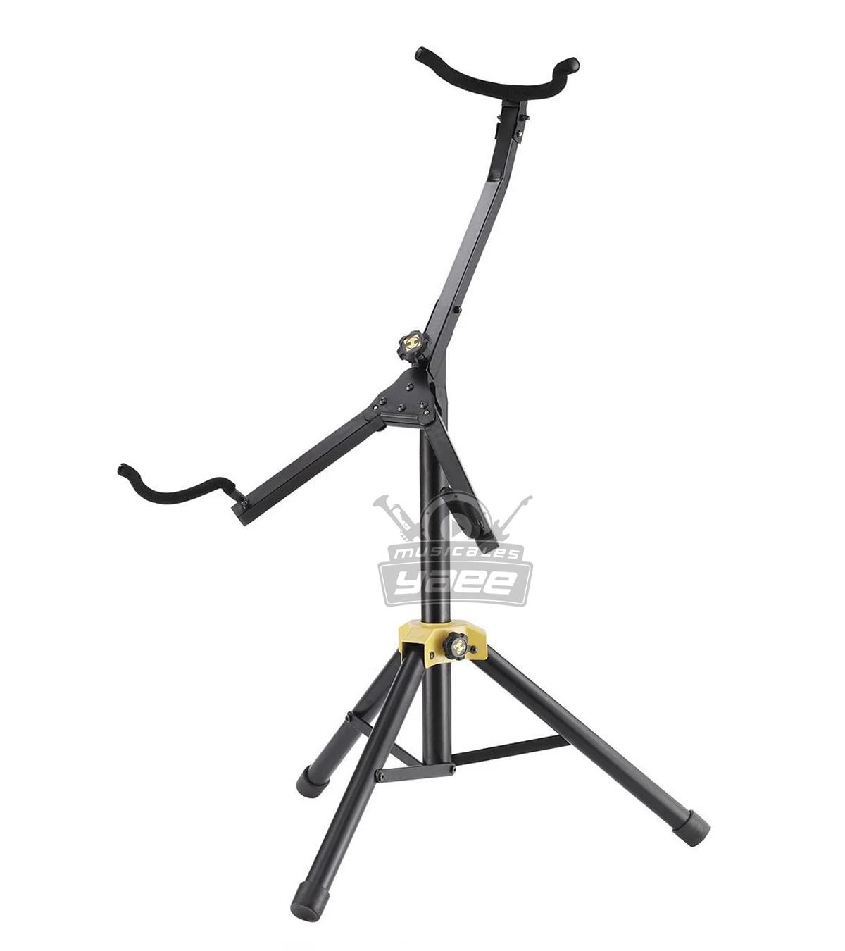 El soporte DS510BB de Hercules para trompeta, cuenta con un cono en SFF ajustable y desmontable y patas movibles que se adaptan a otros soportes que haya a su alrededor.