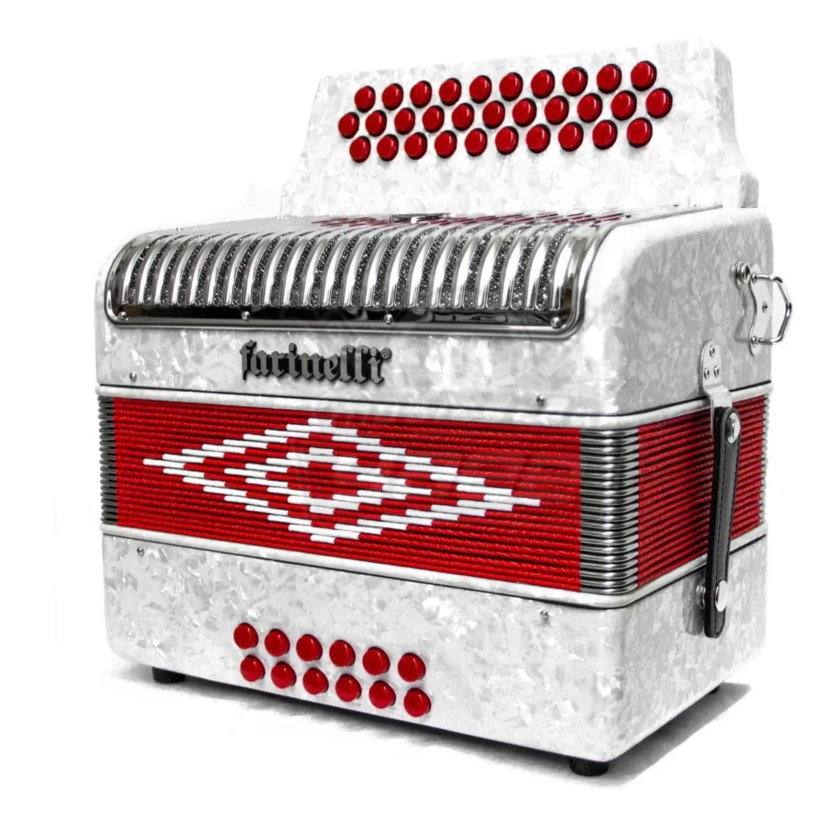 Diseñado por Farinelli, este acordeón de excepcional valor ofrece robusta construcción y sonido superior con voces profesionales . Los acordeones de la marca Farinelli son ensamblados a mano . Vienen empacados con estuche y correas.