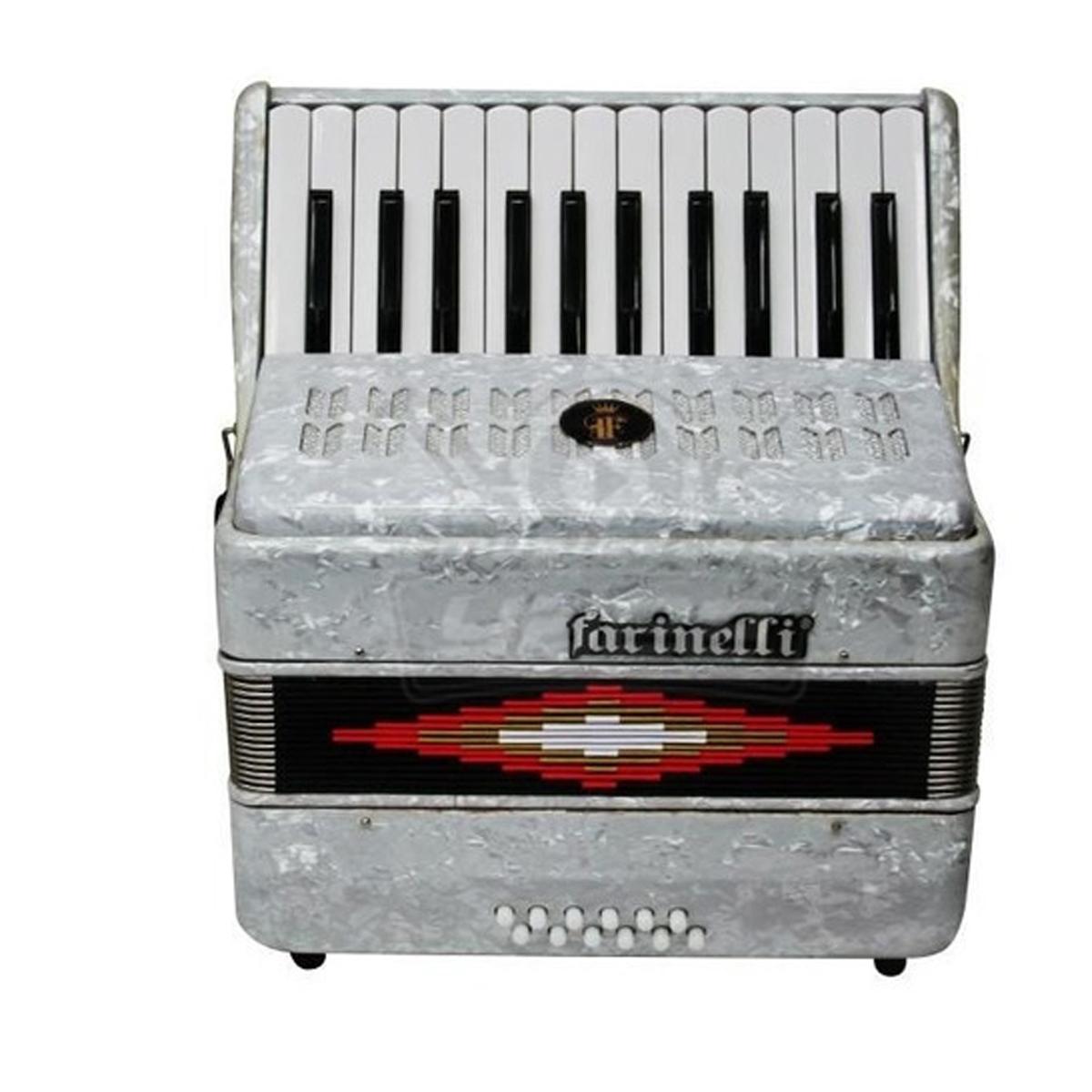 Este acordeón está hecho y fabricado para el músico aspirante que busca un instrumento económico y de calidad. Diseñado por Farinelli, este acordeón de excepcional valor ofrece robusta construcción y sonido superior con voces profesionales . Los acordeones de la marca Farinelli son ensamblados a mano . Vienen empacados con estuche y correas.