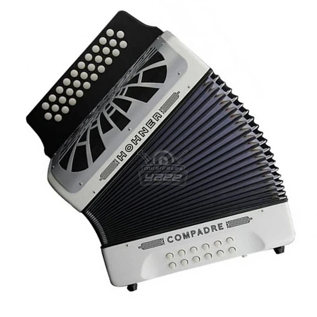 El acordeón Compadre con su nueva parrilla gris mate, es un modelo diatónico de tres filas con un acabado de pintura mate similar al acordeón Panther, pero con una extensa gama de colores y con correa de bajos ajustable. Incluye mochila para su transportación y almacenamiento, además de un conjunto de correas. Perfecto para los acordeonistas intermedios, o aquellos que buscan comprar un segundo acordeón.