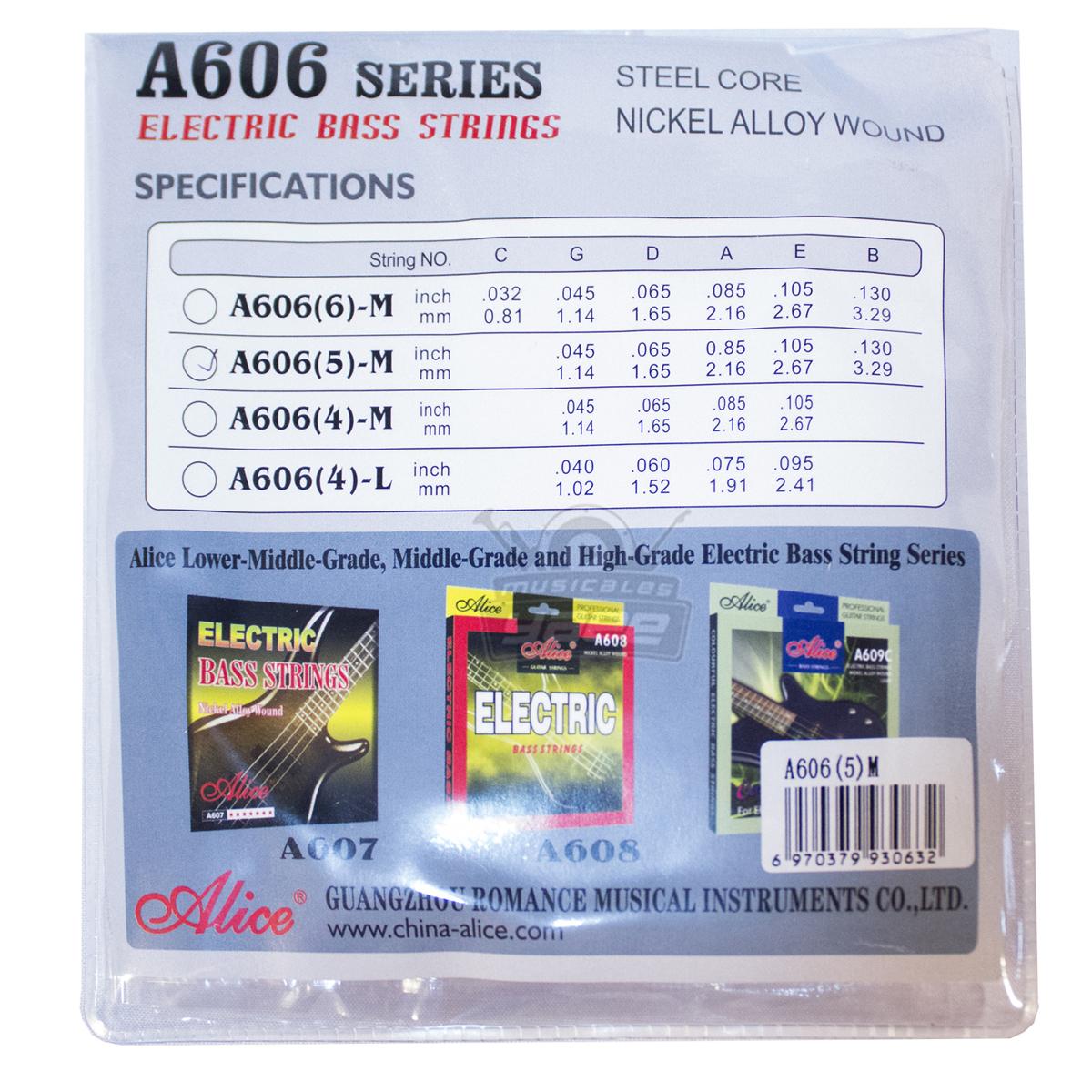 Encordado Alice para bajo eléctrico de cinco cuerdas, con núcleo de acero y recubrimiento de nickel trenzado, perfecto para aprendices.