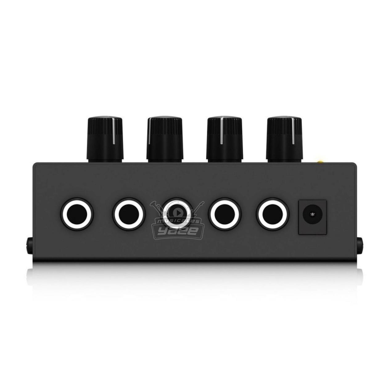Un amplificador ultra compacto para audífonos de 4 canales para home studio o escenario, 4 secciones estéreo independientes, alta calidad con cualquier tipo de audífono incluso al máximo volumen, control de nivel por canal, incluye adaptador dc 12v.