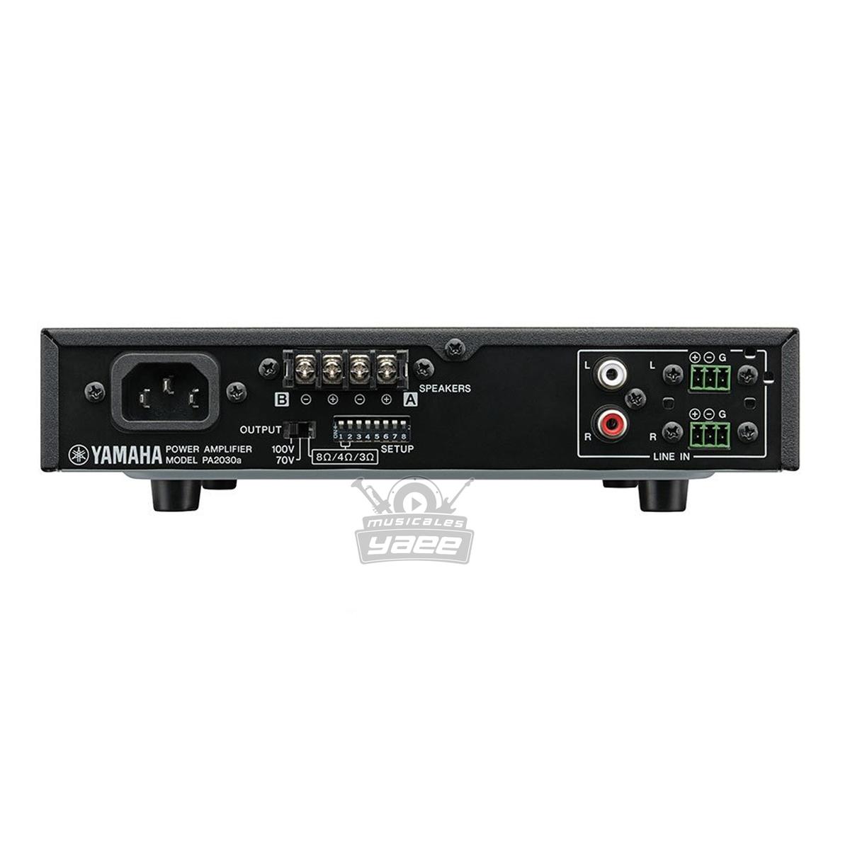 Amplificador de clase D con selección de baja impedancia/alta impedancia (baja impedancia: 30 W x 2 canales; alta impedancia: 60 W x 1 canal), equipado con entradas de línea 1 estéreo/2 mono; puede combinarse con el amplificador-mezclador MA2030a.