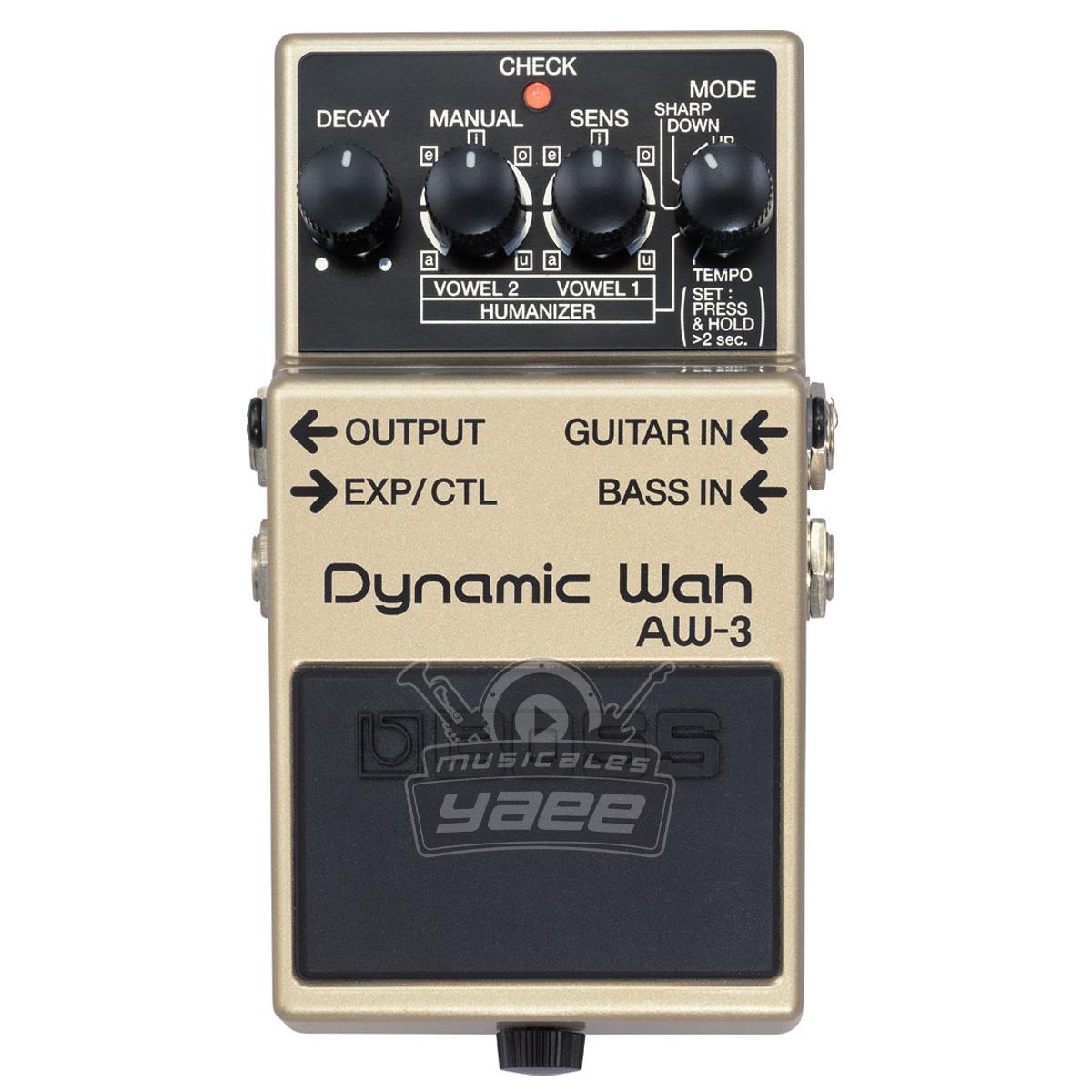 El AW-3 es el primer pedal compacto del mundo que produce sonidos de tipo wah de voz humana utilizando un efecto "Humanizador." El modo EXP Pedal con el EV-5 le permite controlarlo con el pie, además de una entrada Bass especial para el procesamiento de bajo.