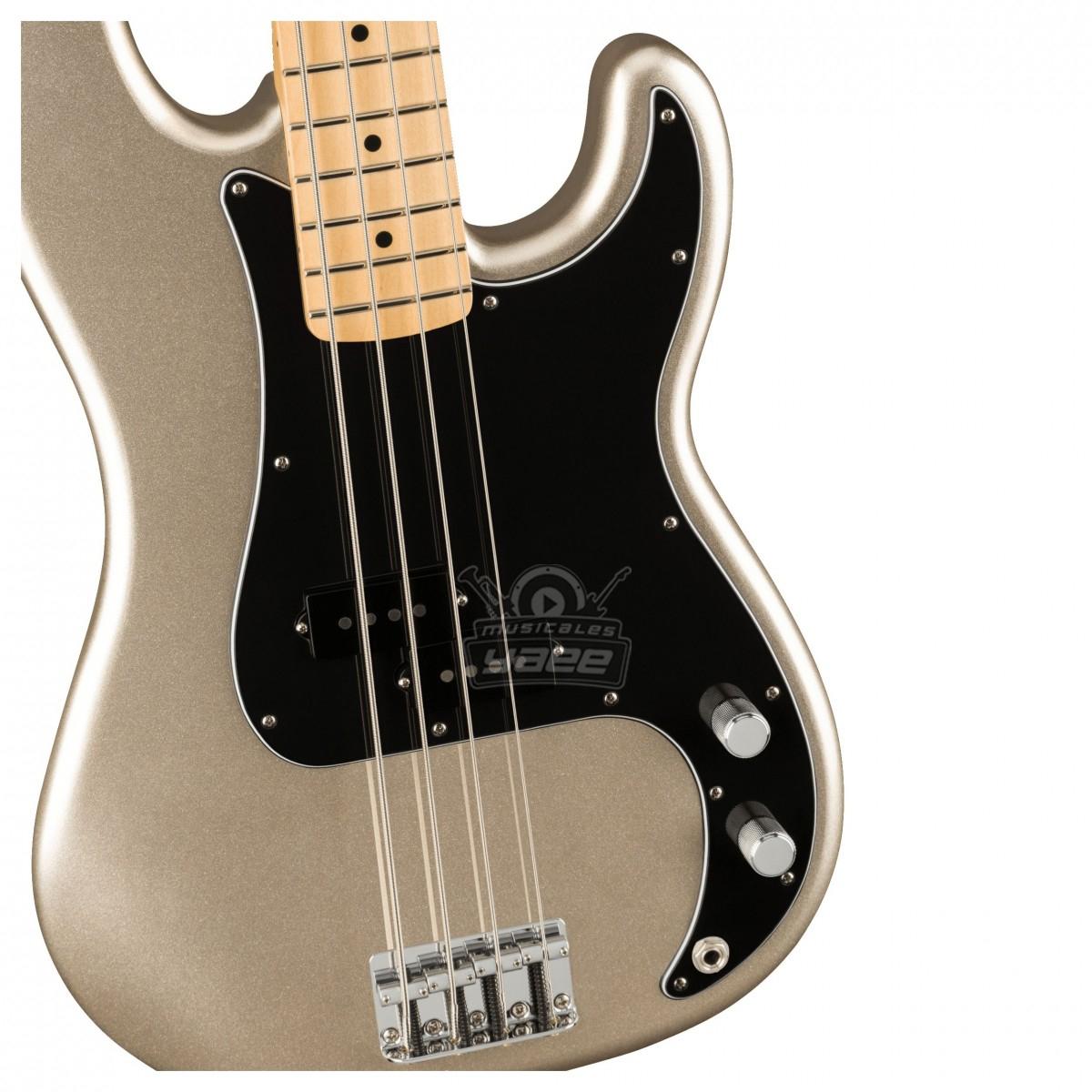 Un instrumento absolutamente impresionante. Este P-Bass 75th Anniversary presenta un nuevo acabado metálico Diamond Anniversary, con un llamativo clavijero a juego. Su mástil de arce con acabado satinado y perfil Modern C es exquisitamente ergonómico y le permitirá deslizar los dedos por el diapasón con fluidez. Además, podrá llevarlo sin problemas a sus giras y conciertos gracias a la funda Fender Deluxe incluida de serie. El emblemático Fender P-Bass original revolucionó el panorama, y ahora, con este 75th Anniversary, también usted podrá dejar su huella.
