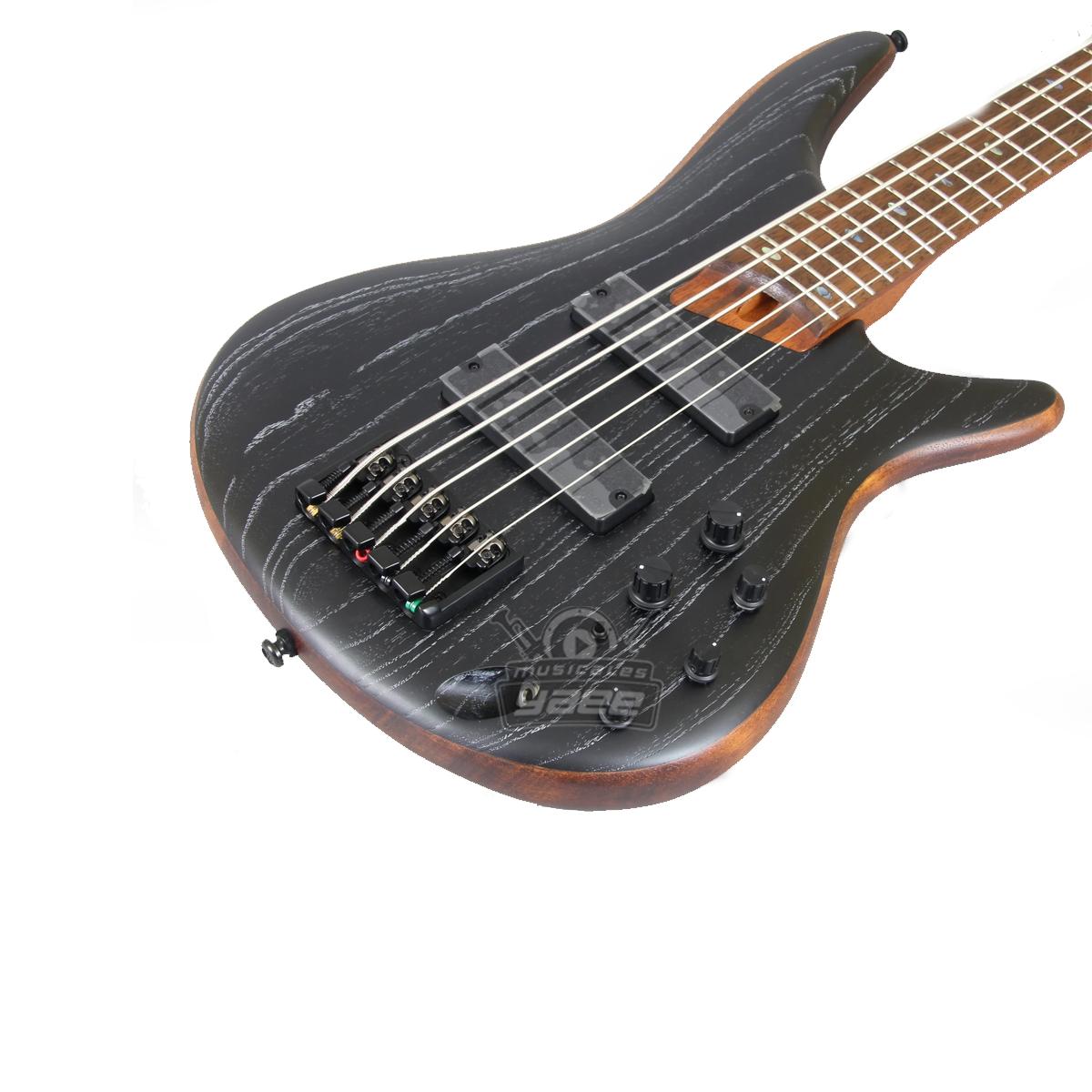 Ibanez SR675 y rápidamente descubrirá que Ibanez incluyó este instrumento de precio modesto con serias actualizaciones. Lo primero que notará es el cuerpo de caoba arqueado liviano y elegantemente contorneado y la llamativa tapa de fresno con figuras negras y plateadas. Envuelva su mano alrededor del delgado mástil de jatoba / nogal de 5 piezas y toque algunas notas: notará que sus dedos se vuelven borrosos mientras vuelan por el diapasón de jatoba y las incrustaciones de abulón. Conéctelo: dos pastillas Bartolini BH2 de doble bobina brindan un golpe fenomenal con un sustain masivo cortesía del puente Accu-cast B500, mientras que la electrónica activa de 3 bandas ofrece una amplia gama de posibilidades de modelado de sonido para cualquier concierto o sesión. Ibáñez puso su considerable conocimiento en el SR675, y se nota. El Ibanez SR675 es un valor excepcional.