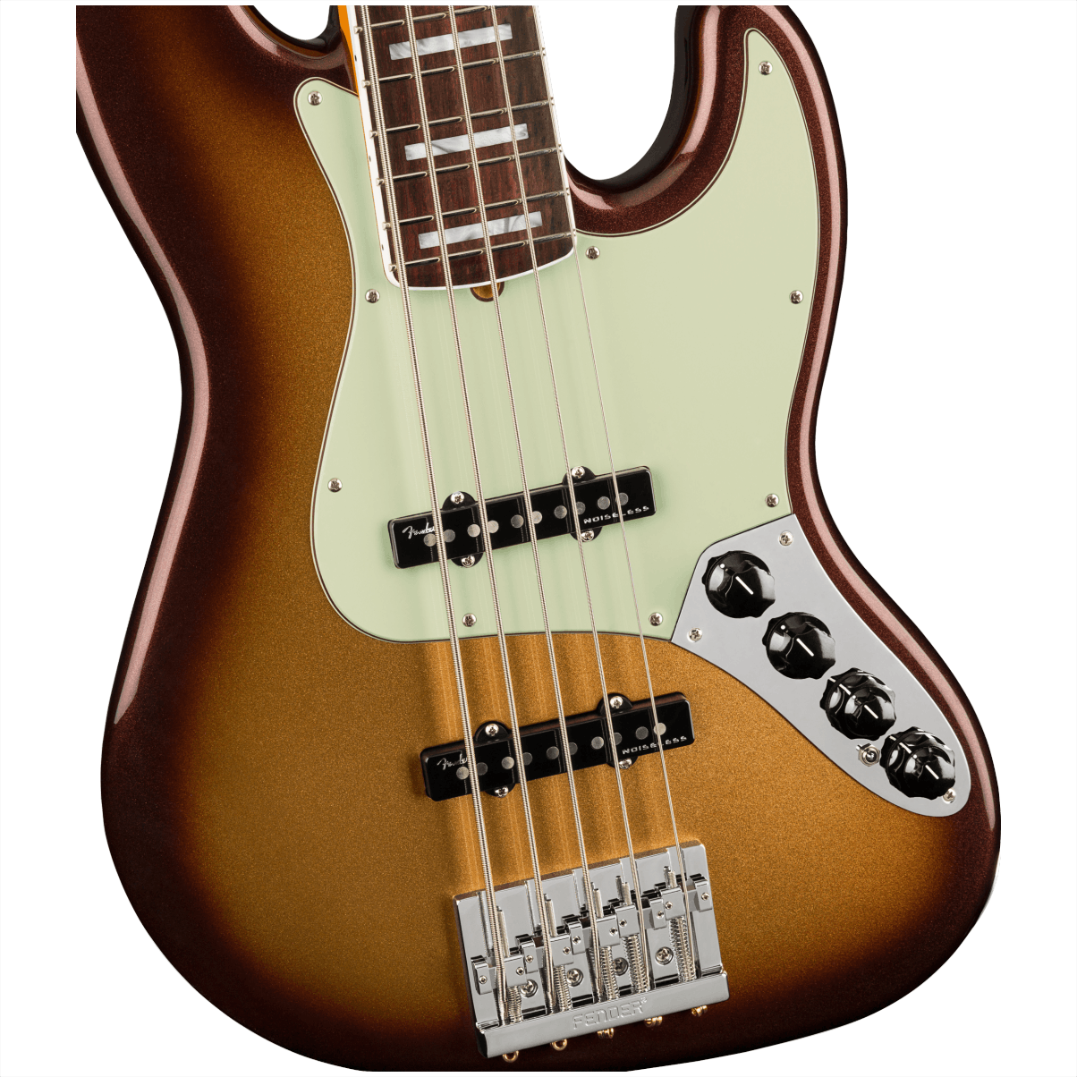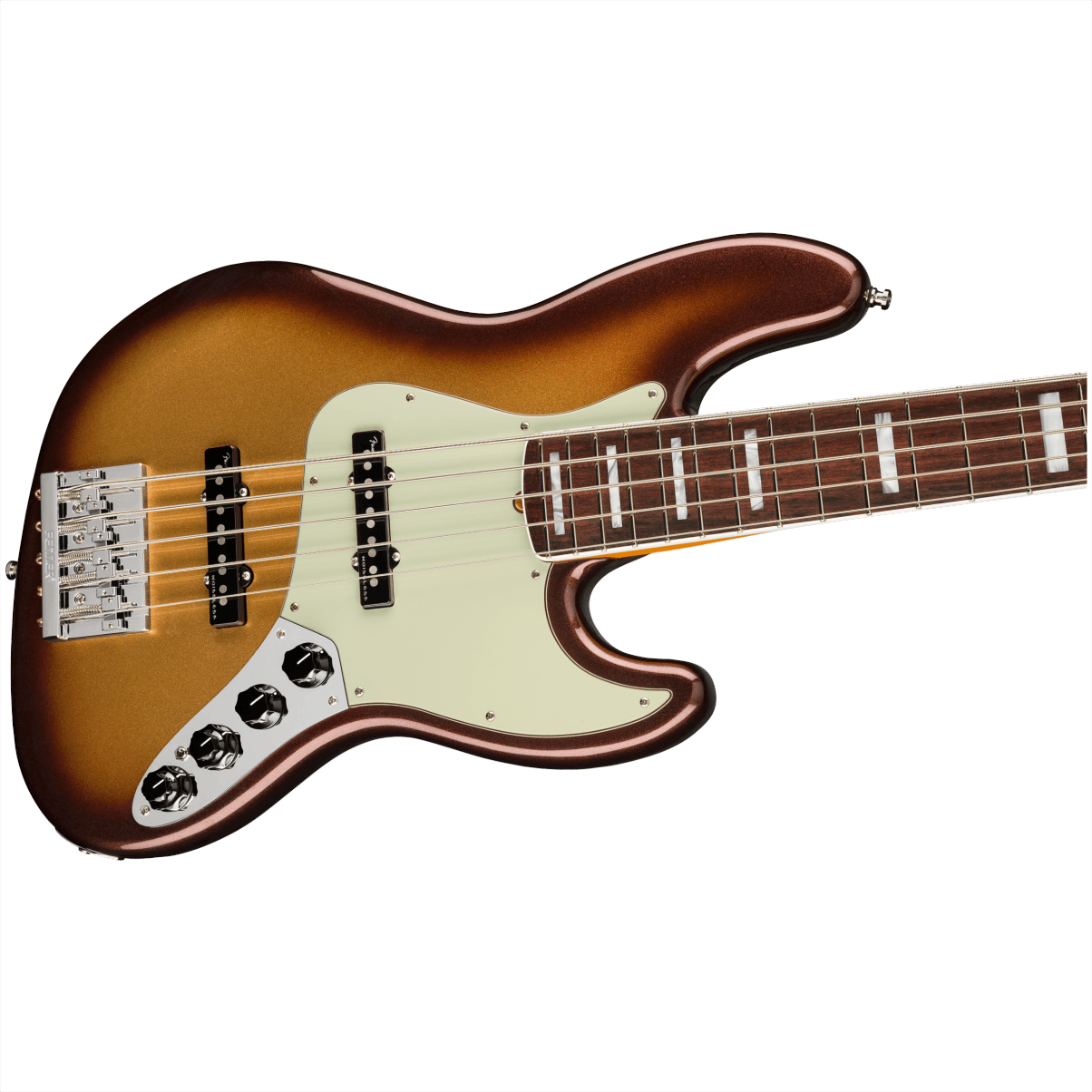La serie American Ultra de guitarras y bajos es la más avanzada para músicos exigentes que piden lo último en precisión, rendimiento y tono. El American Ultra Jazz Bass V presenta un exclusivo perfil de mástil de " D moderna” con bordes de diapasón redondeados para horas de comodidad, y la forma del talón del mástil permite un fácil acceso al registro más alto. Un veloz diapasón de radio compuesto de 10 "a 14" con 21 trastes medium jumbo medio para solos precisos y sin esfuerzo, mientras que las pastillas Ultra Noiseless ™ y las opciones avanzadas de cableado brindan infinitas posibilidades de sonido: sin zumbidos. Este versátil instrumento de última generación te inspirará a llevar tu interpretación a nuevas alturas. Otras características incluyen clavijeros de palomilla vintage livianos con la "F" y ejes cónicos, herrajes de cromo y cejilla de hueso. Incluye estuche rígido moldeado de primera calidad.