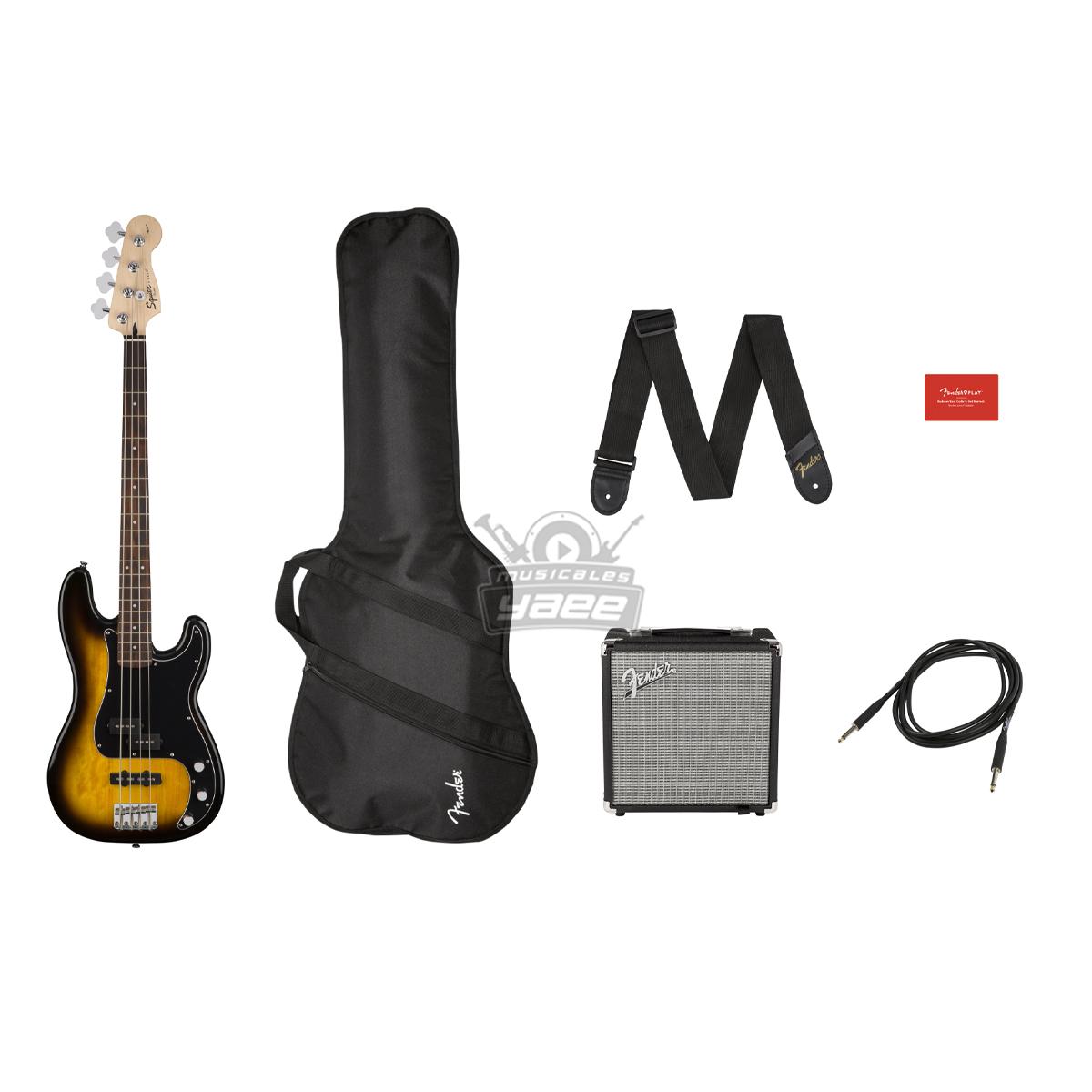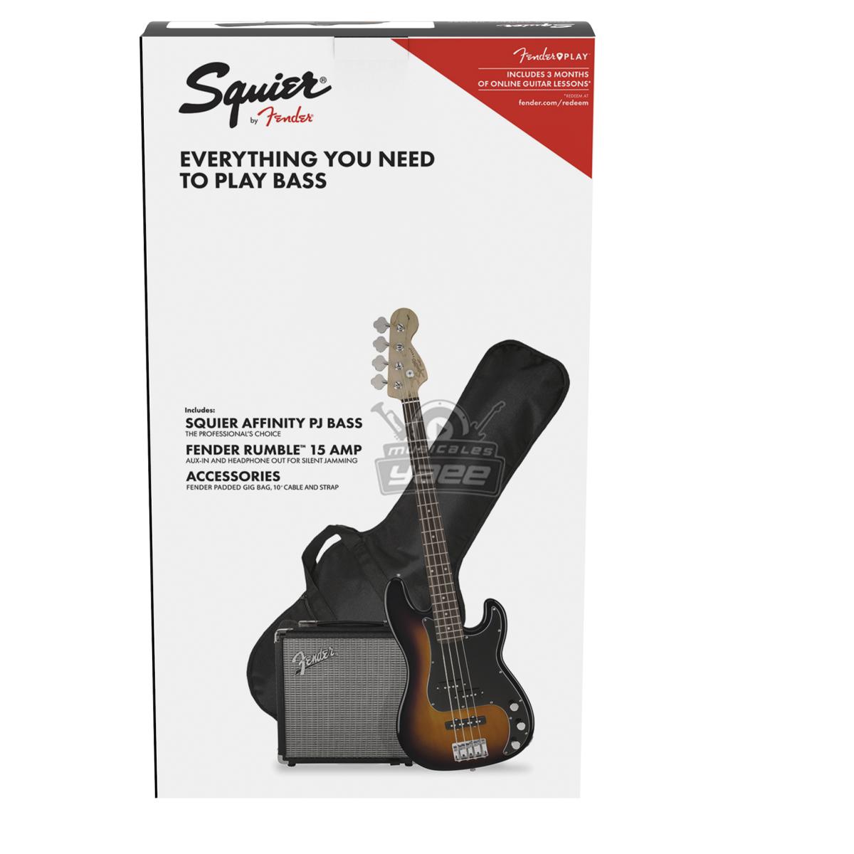Ideal para quienes tocan por primera vez, el paquete de bajos Squier Affinity PJ incluye un bajo de precisión de la serie Affinity con una potente pastilla intermedia P Bass® de bobina dividida y una pastilla de puente de bobina simple J Bass® que gruñe. También cuenta con un cuello suave en forma de "C" y un cuerpo ligero y cómodo. También incluimos una suscripción gratuita de 3 meses a Fender Play®, la forma más sencilla de aprender a tocar el bajo.