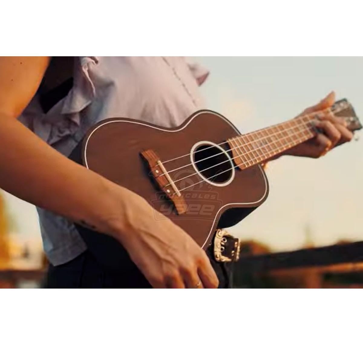Lo que le da nuevas características: el cuerpo del instrumento es más grande, por lo que ganamos resonancia (volumen) logrando conseguir un tono más cálido y grave sin perder el sonido clásico del ukelele.