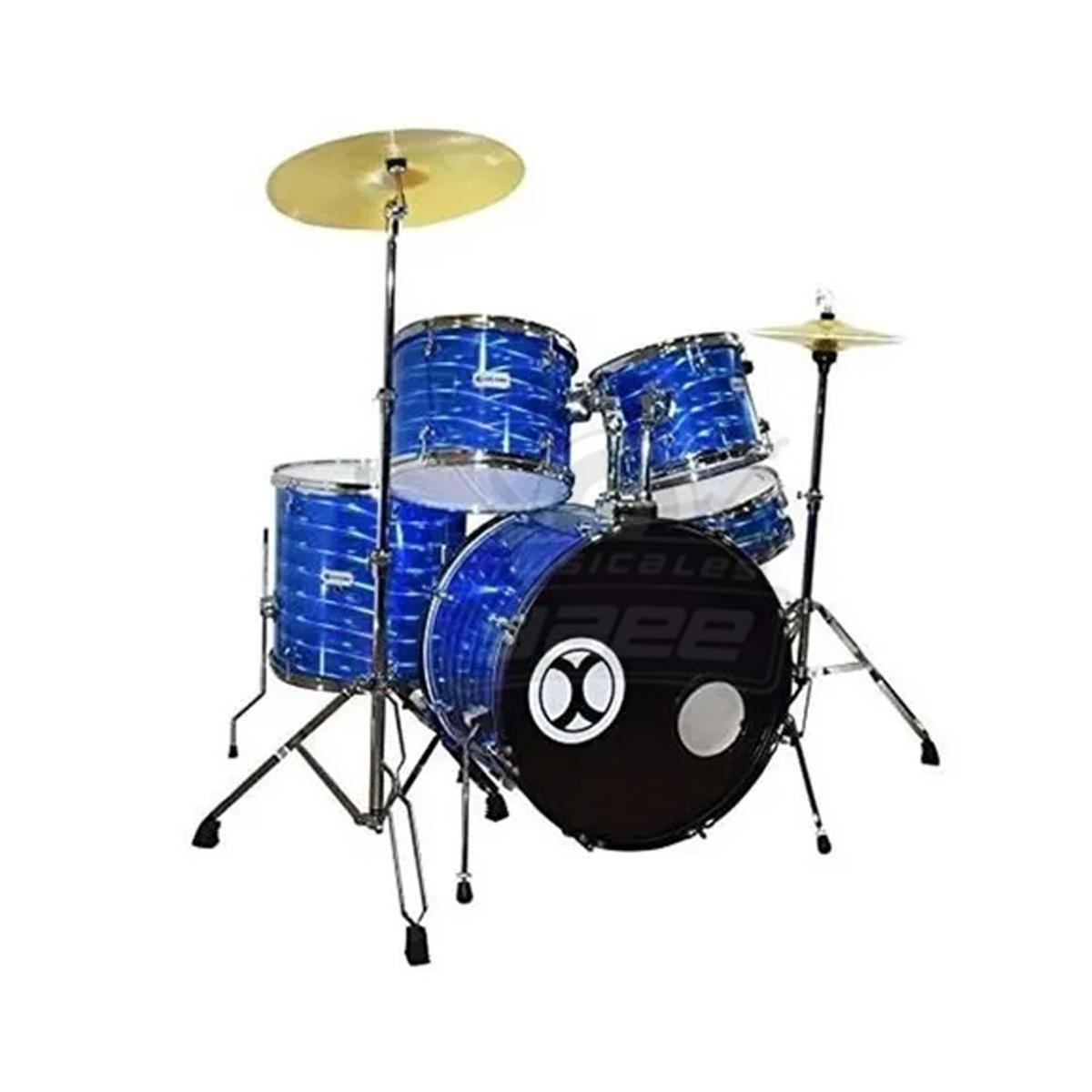 BATERIA EXTREME PROFESIONAL AZUL 3D 5 PZAS CON BANCO Y PLATILLOS
