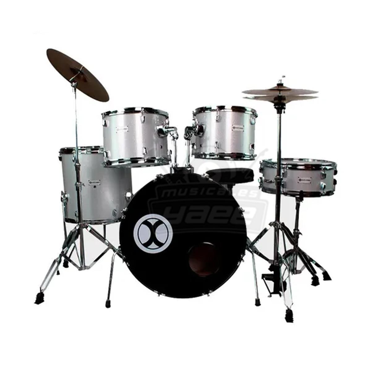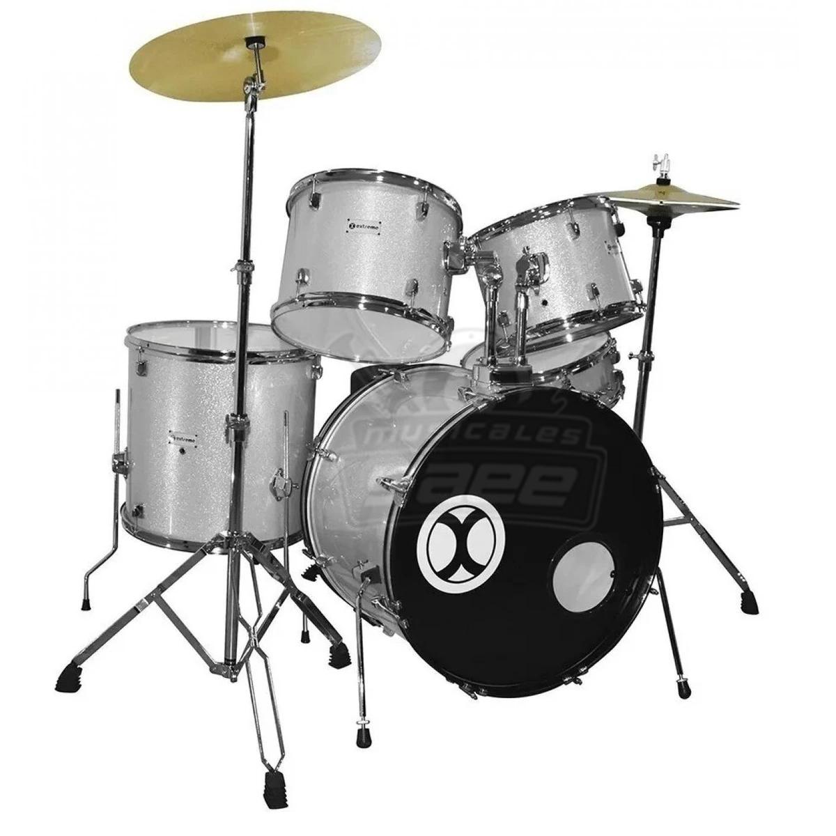 BATERIA EXTREME PROFESIONAL PLATA SPARKLE 5 PZAS CON BANCO Y PLATILLOS