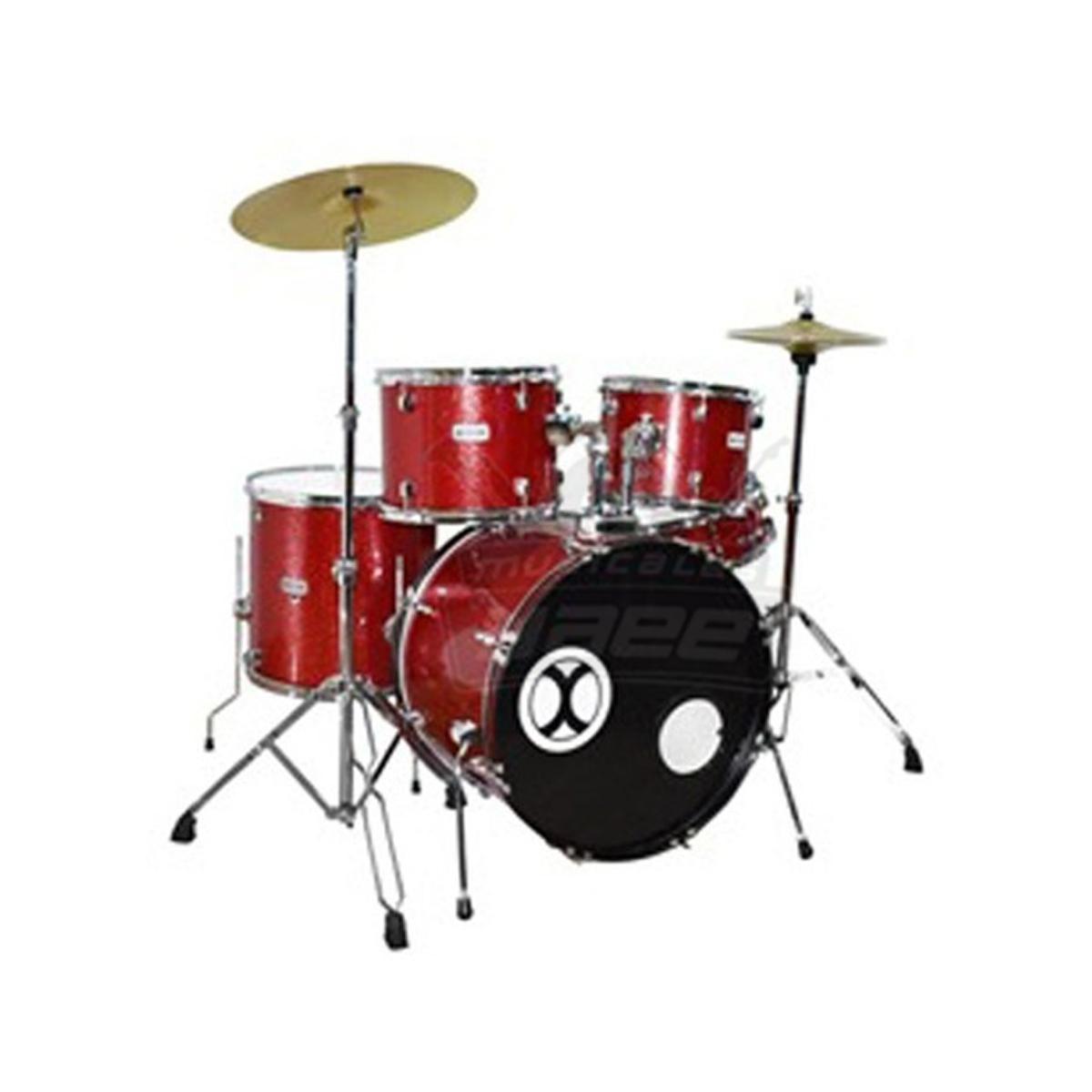BATERIA EXTREME PROFESIONAL ROJO SPARKLE 5 PZAS CON BANCO Y PLATILLOS