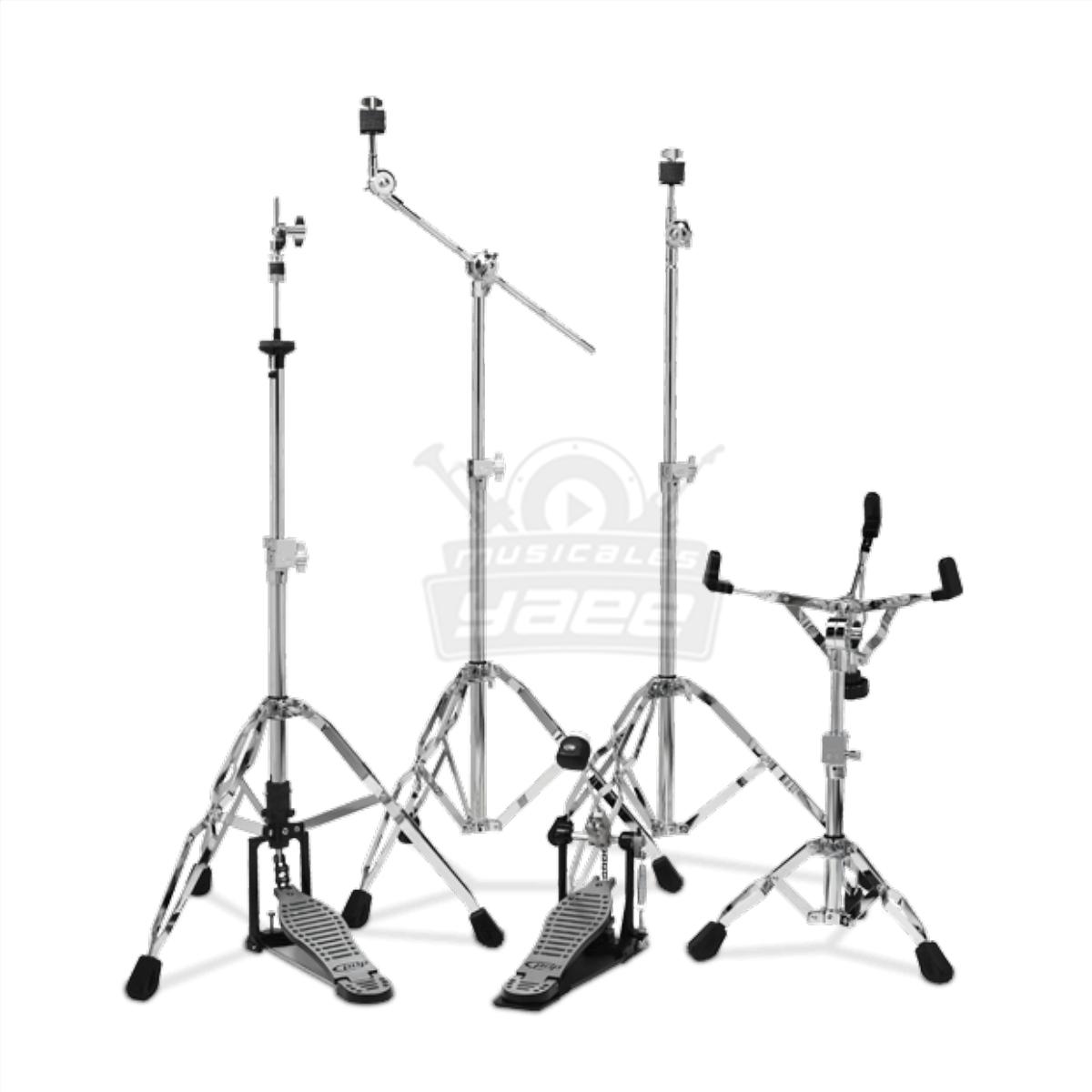 | Soporte | 2 soportes de plato + 1 soporte de caja + 1 pedal hihat + 1 pedal de bombo.Herrajes de doble perfil de la serie 400 |