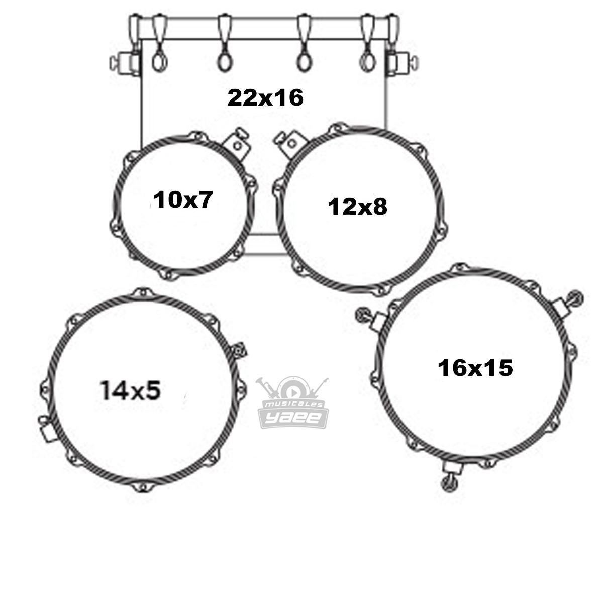 | Toms montados ( profundidad x diametro) | 7" x 10",8" x 12" |