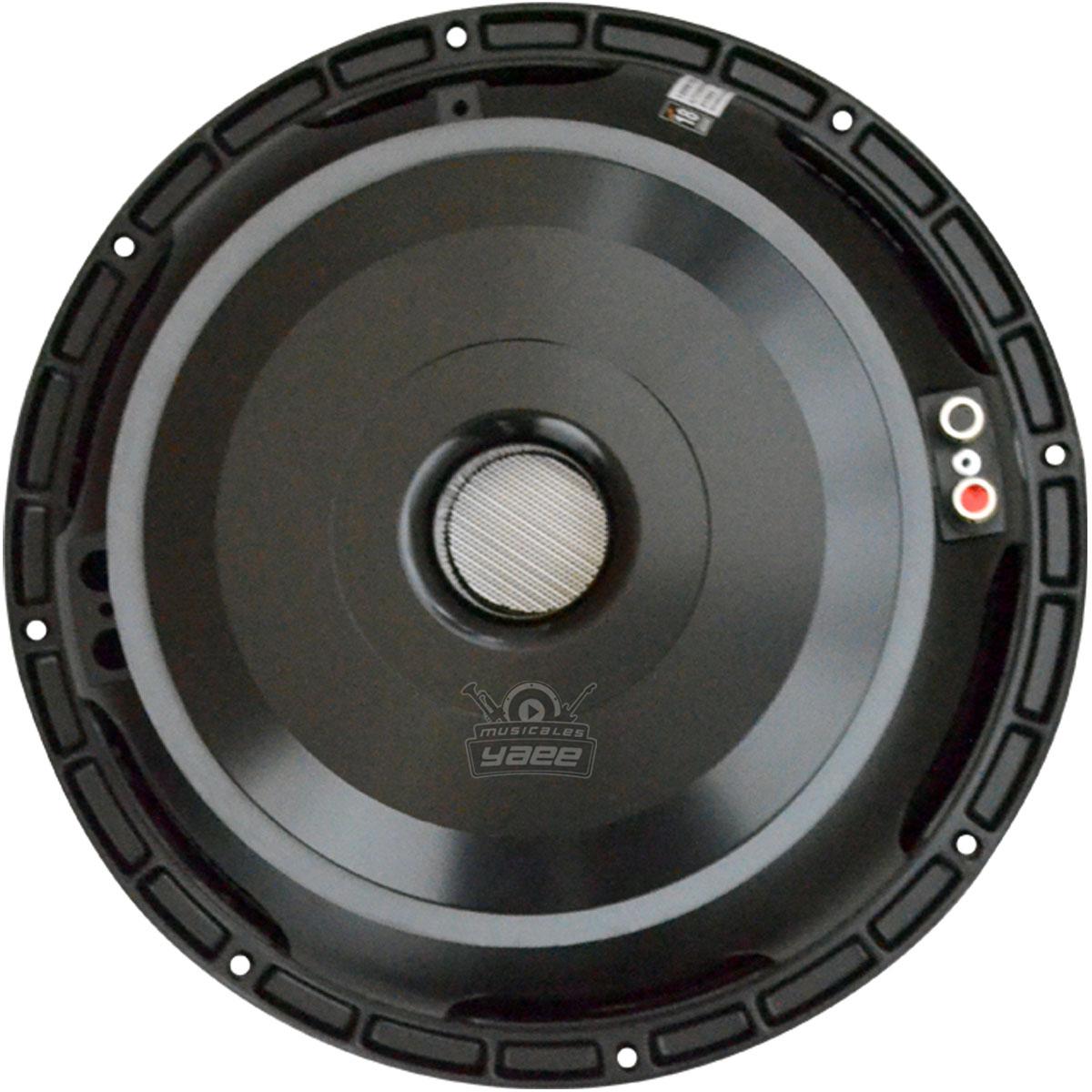 Bocina de 12” pulgadas, imán de ferrita, excelente respuesta transitoria, compresión de muy baja potencia, disipación mejorada de calor a través del diseño único de la canasta, ideal para sistemas de radiación directa o horn loaded midbass, impedancia: 8 ohms, potencia AES: 600 W, programa: 800 W, pico: 1,600 W, sensibilidad: 102 dB, rango de frecuencia: 80 – 3,500 Hz, bobina móvil de cobre de 4” pulgadas (100 mm), peso: 9.6 kg