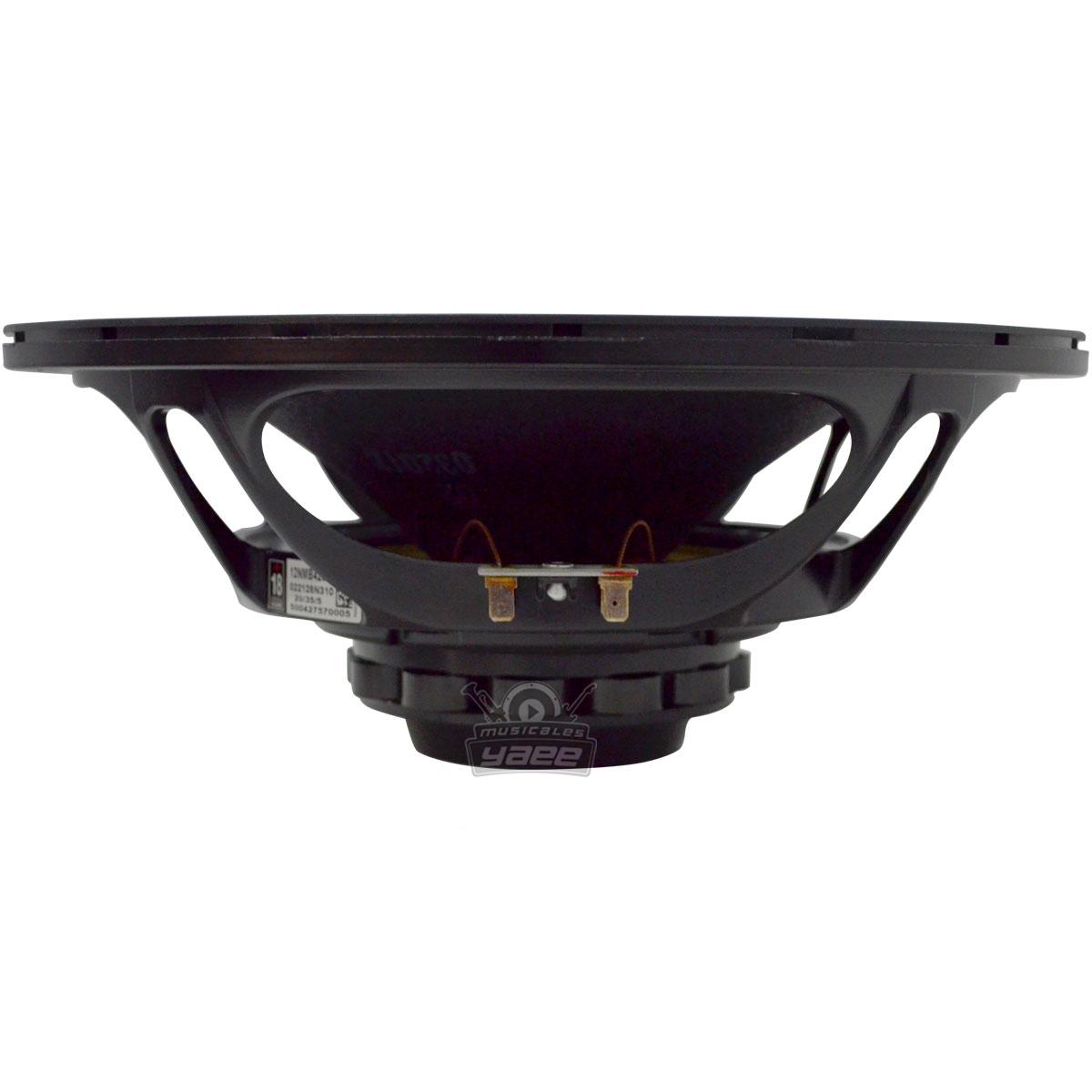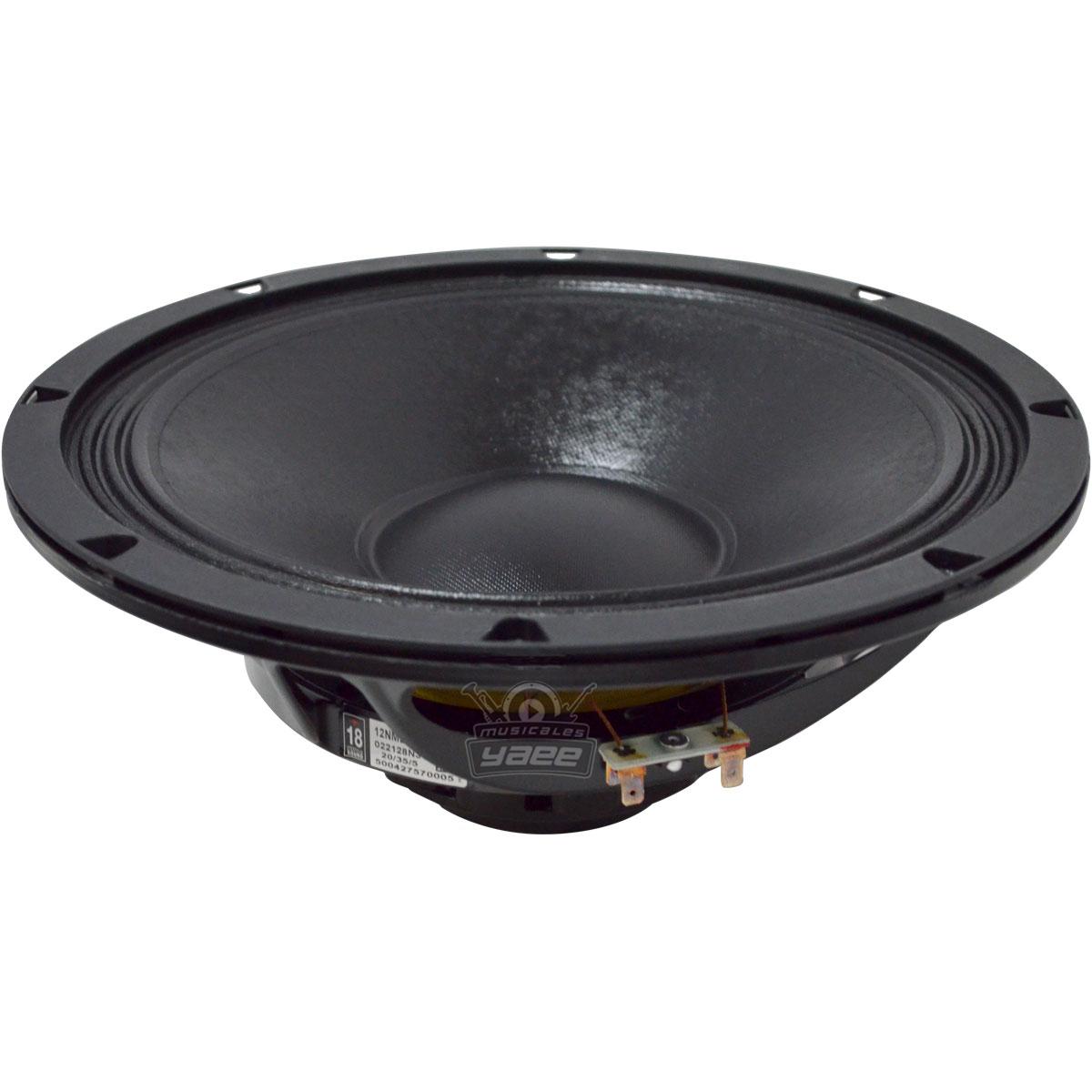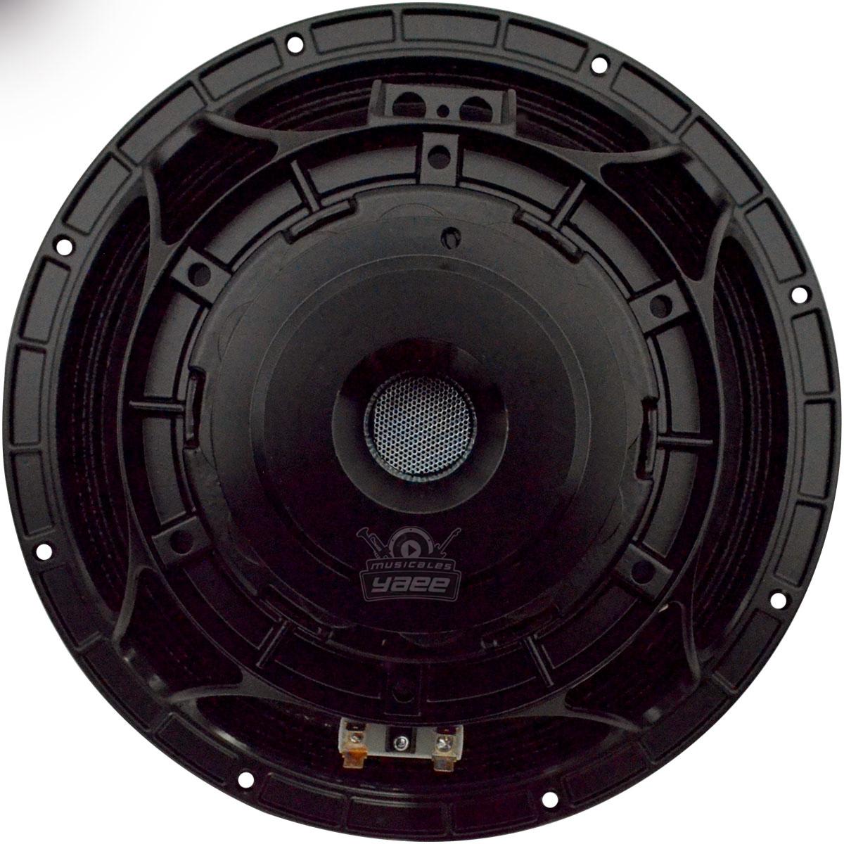 Bocina de 12” pulgadas, imán de neodimio, anillo demodulador (SDR) para una menor distorsión, anillo de cobre para menor distorsión de intermodulación, conos y platos protegidos contra la intemperie para uso en exteriores, especialmente diseñada para sistemas compactos de dos vías, impedancia: 8 ohms, potencia AES: 300 W, programa: 450 W, pico: 900 W, sensibilidad: 100.5 dB, rango de frecuencia: 55 – 6,000 Hz, bobina móvil de aluminio de 2.5” pulgadas (65 mm), peso: 2.8 kg.