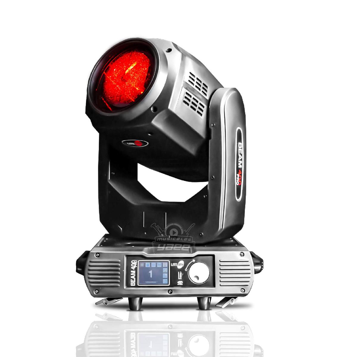 Beam 400 Pro usa un reflector con una película luminiscente de cerámica como un sistema condensador acoplado con componentes ópticos de muy alta calidad, tensión de banda ancha, un patrón claro, dando un haz de luz de salida agudo y uniforme.