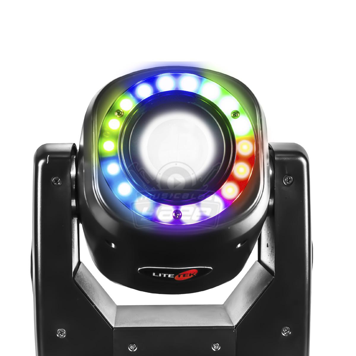 Increíble cabeza móvil con led potente y superbrilloso, además está diseñada con un aro de leds; los cuales generan impresionantes baños de color y efectos.