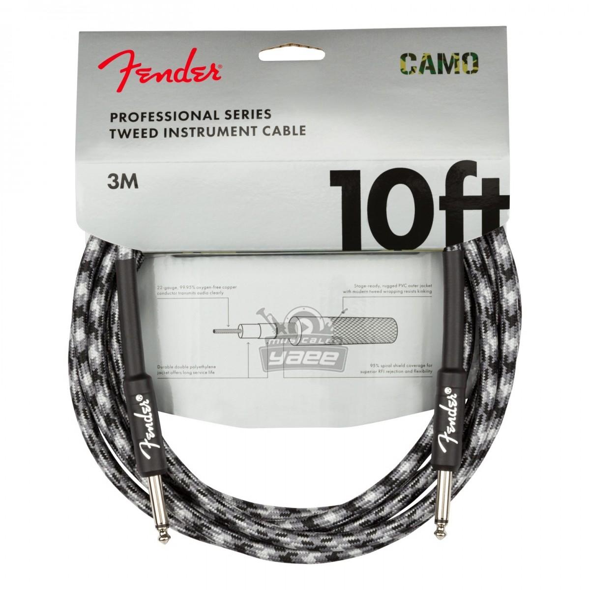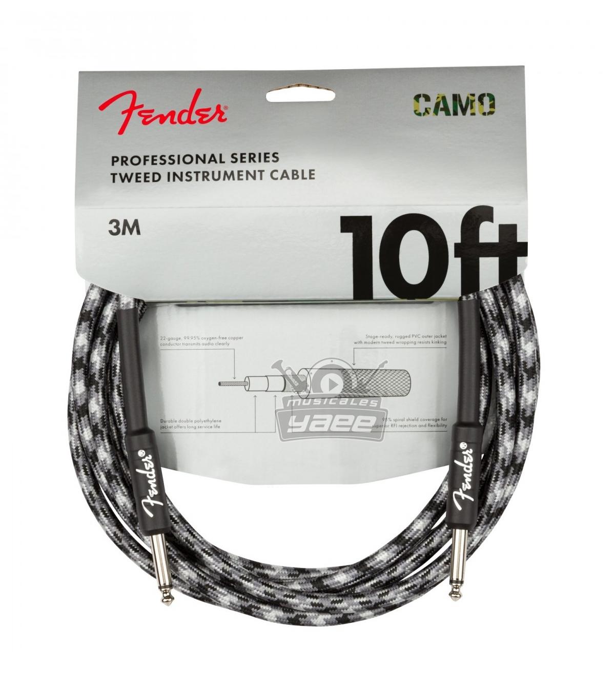 El estilo importa, así que mejore la estética de su equipo con el Cable de Instrumento de 3 m con Conectores Rectos Fender Professional. Este cable presenta un atractivo acabado Winter Camo, sin perder ni un ápice de la calidad de renombre mundial Fender que tanto aprecia. Fabricado con materiales y componentes de primera calidad y dotado de un calibre grueso, este cable de instrumento profesional de 3 metros cumple con todos los requisitos para brindarle resultados excelentes en sus giras y conciertos. Escuchará su sonido con claridad, al tiempo que su silencioso y fiable blindaje en espiral evitará que el cable se retuerza y se anude. Suena bien, ¿verdad? Es hora de actuar con total confianza y absoluta tranquilidad.