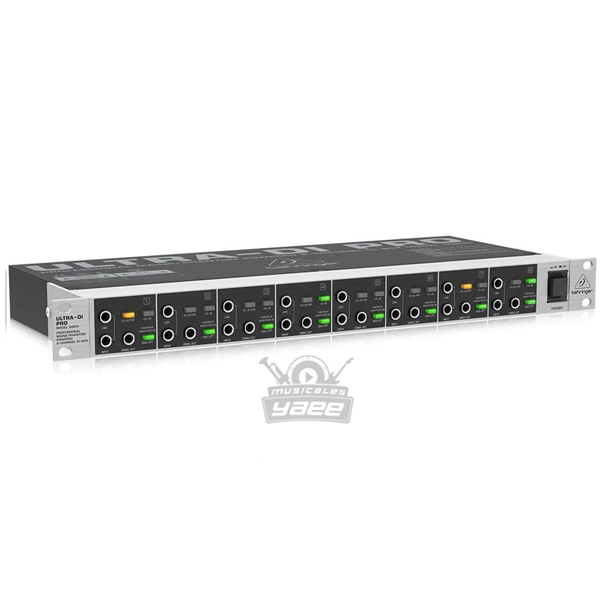 Caja directa activa de 8 canales apta tanto para su uso en estudio y aplicaciones en vivo. La unidad convierte entradas de lìnea desbalanceadas en salidas balanceadas, y cuenta con funcionamiento con la red elèctrica o alimentaciòn fantasma. Cada canal cuenta con un interruptor de atenuaciòn para impulsar las señales de bajo nivel,pad de anulaciòn de tierra, y la capacidadde tomar la salida de altavoz de un amplificador. Un conector en el panel frontal està conectado en paralelo con la entrada principal de cada canal, y puede funcionar como una entrada adicional o una salida directa.