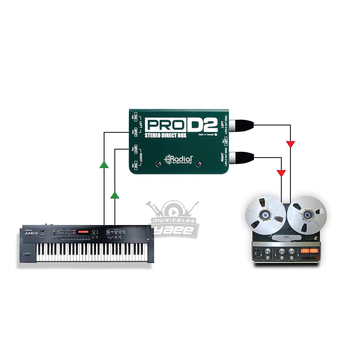 El Radial ProD2 es una caja compacta directa estéreo desarrollada específicamente para abordar las necesidades y los desafíos de la interfaz de un teclado estéreo con un sistema de audio profesional.