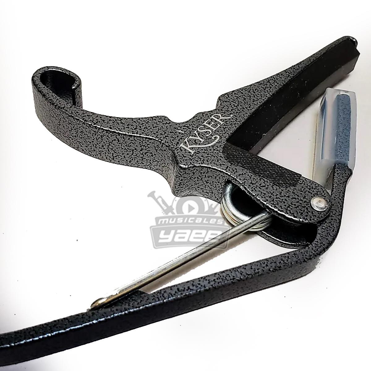Un Kyser® Quick-Change® está diseñado por expertos y construido para durar. Es confiable y hace exactamente lo que está diseñado para hacer: elevar claramente el tono de la guitarra para que pueda tocar en una tecla diferente sin volver a afinar o cambiar la digitación. Tanto los profesionales experimentados como los principiantes aprecian cómo Kyser® Quick-Change® les ayuda a transponer su guitarra en segundos, con solo una mano. La belleza de Kyser® Quick-Change® está en su simplicidad. Fuimos pioneros en este diseño y, aunque a menudo se imita, un Kyser® nunca se iguala.