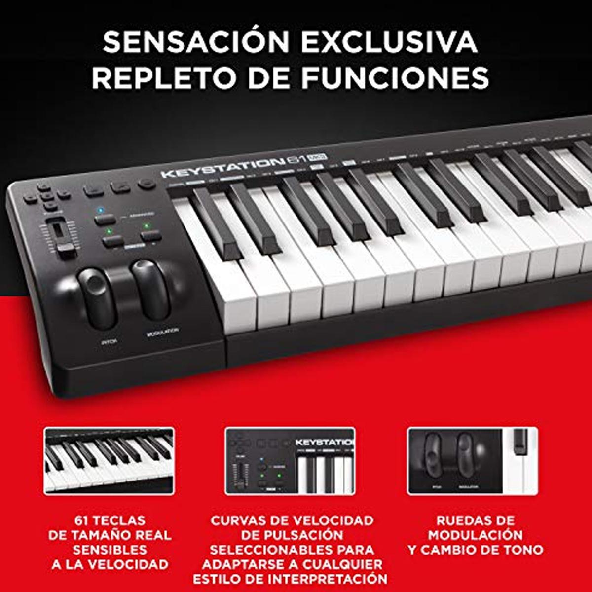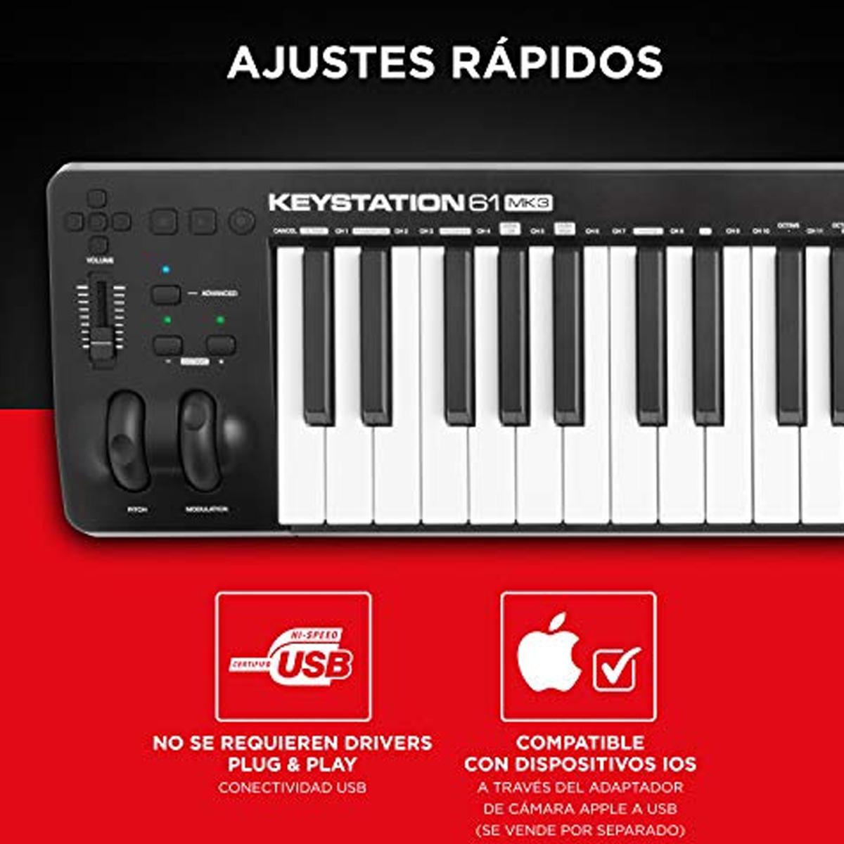 Tome su creatividad al siguiente nivel. La M-Audio Keystation 61 MK3 Controlador USB es la tercera incorporación a la inmensamente popular Keystation de la serie. El Keystation es venerado en el mundo de la producción, por su diseño aerodinámico y una perfecta integración con las aplicaciones Daw.