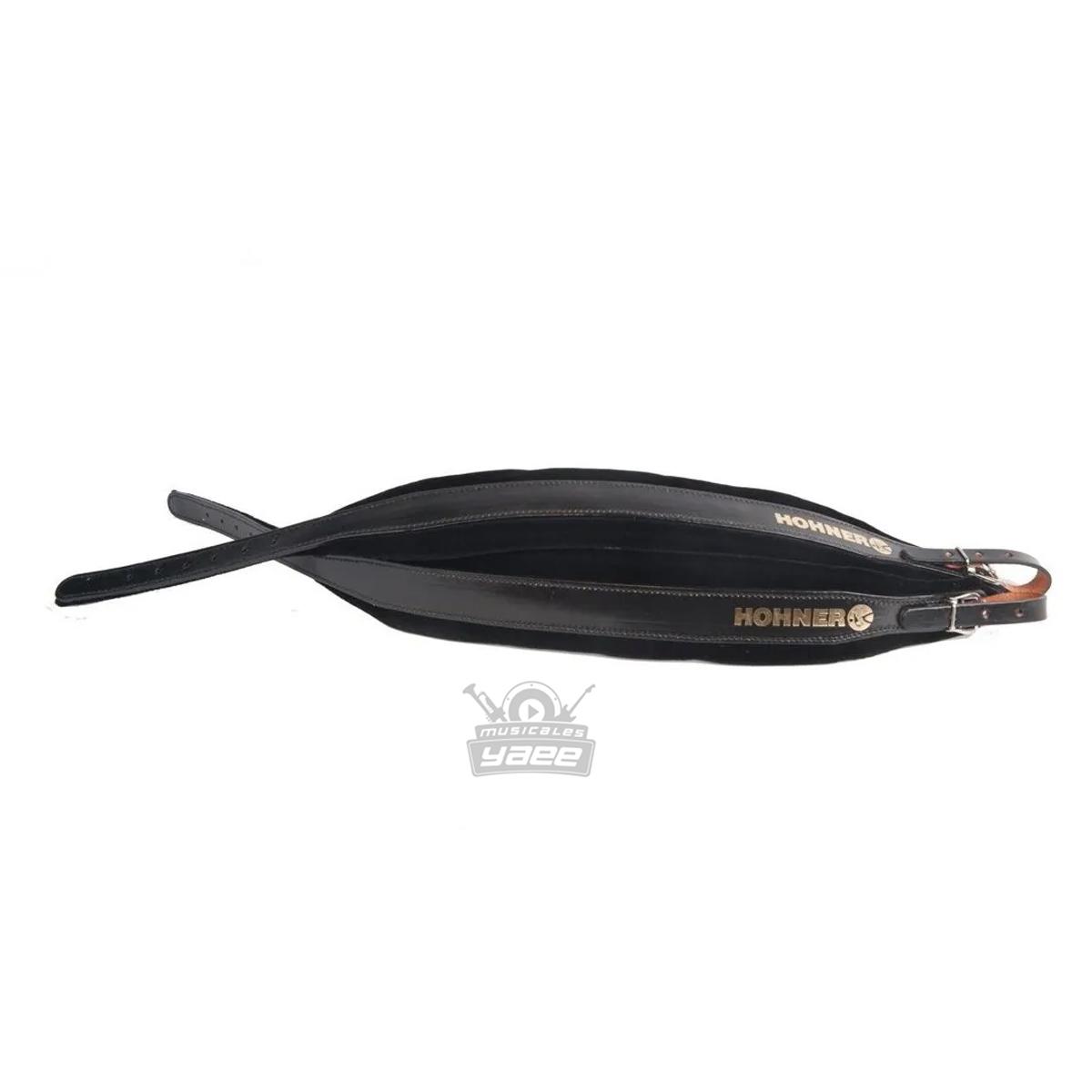 Presentando la correa HOHNER en color Negro Extra Grande, fabricada para acordeones profesionales. Hecho con el cuero de la más fina calidad en Italia, con el relleno suficiente para la comodidad y apoyo.Ideal para los acordeones Diatonicos Corona II, Xtreme y Anacleto.