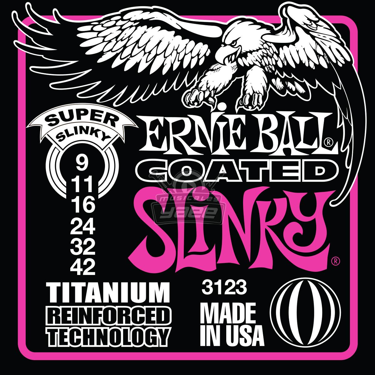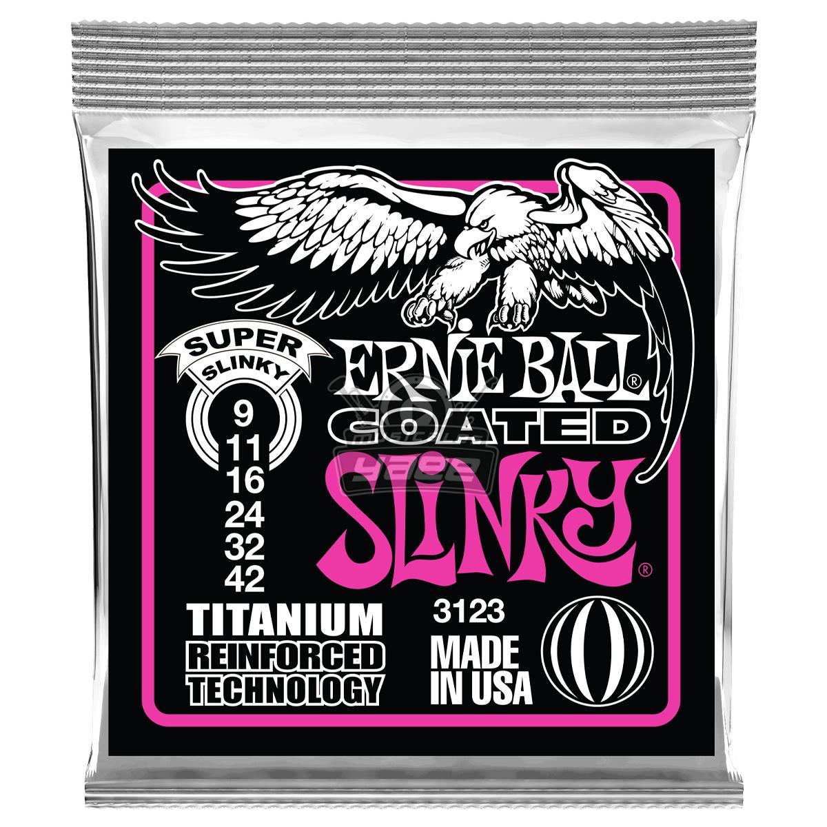 Las cuerdas Ernie Ball Coated Slinky combinan los últimos avances tecnológicos en la fabricación de cuerdas. Todas las cuerdas se tratan con nanotecnología revolucionaria que repele la humedad y los aceites indeseados que impactan negativamente en su tono. Además de tratar las cuerdas, cada una presenta un entorchado de refuerzo patentado de alambre de titanio. La resistencia inherente a los Titanium previene la ruptura de las cuerdas, el deslizamiento de las cuerdas y se ha comprobado que mantiene las cuerdas de sus guitarras más afinada, mejor que las cuerdas simples convencionales. Las cuerdas de guitarra Slinky Coated de Ernie Ball mantienen la sensación y el sonido al tocar con el tono vibrante en el que han confiado los clientes de Ernie Ball desde hace más de 50 años.