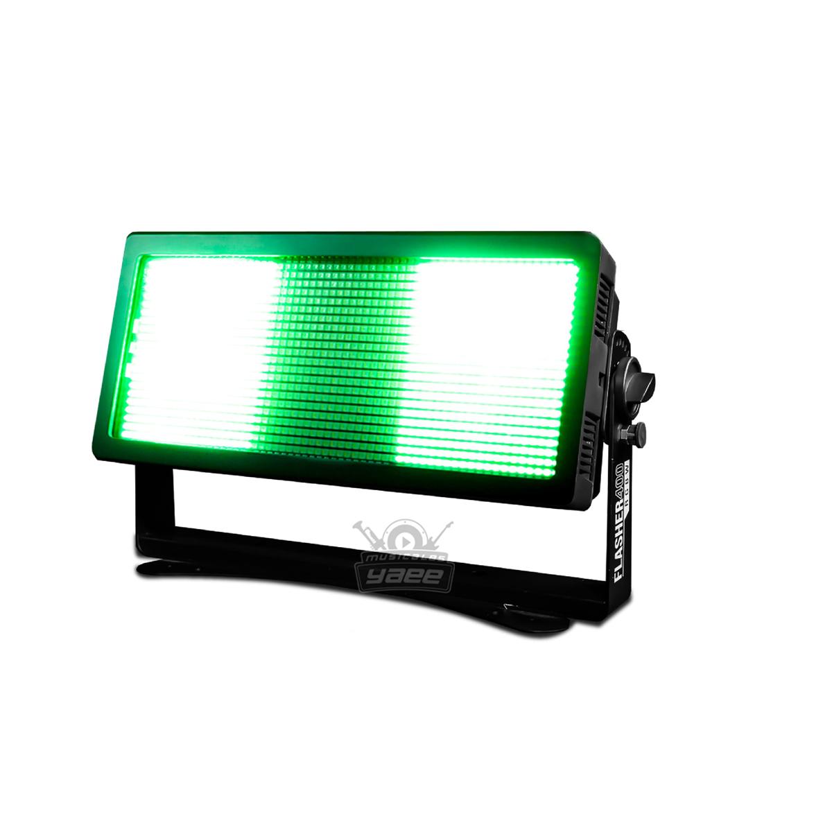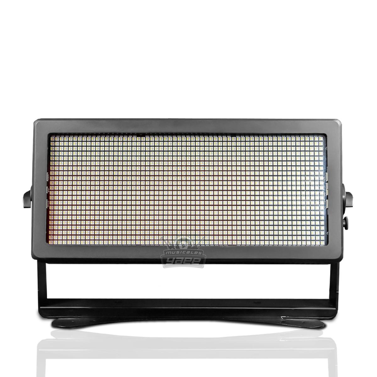 Potente estrobo que puede operar vía control DMX, manual o automáticamente con programas pre-grabados, produce destellos con efectos completos o por secciones de colores y flashes en diferentes velocidades y duración en el equipo. Esta diseñado para uso en interior y exterior gracias a su IP:65 que soporta lluvias ligeras.