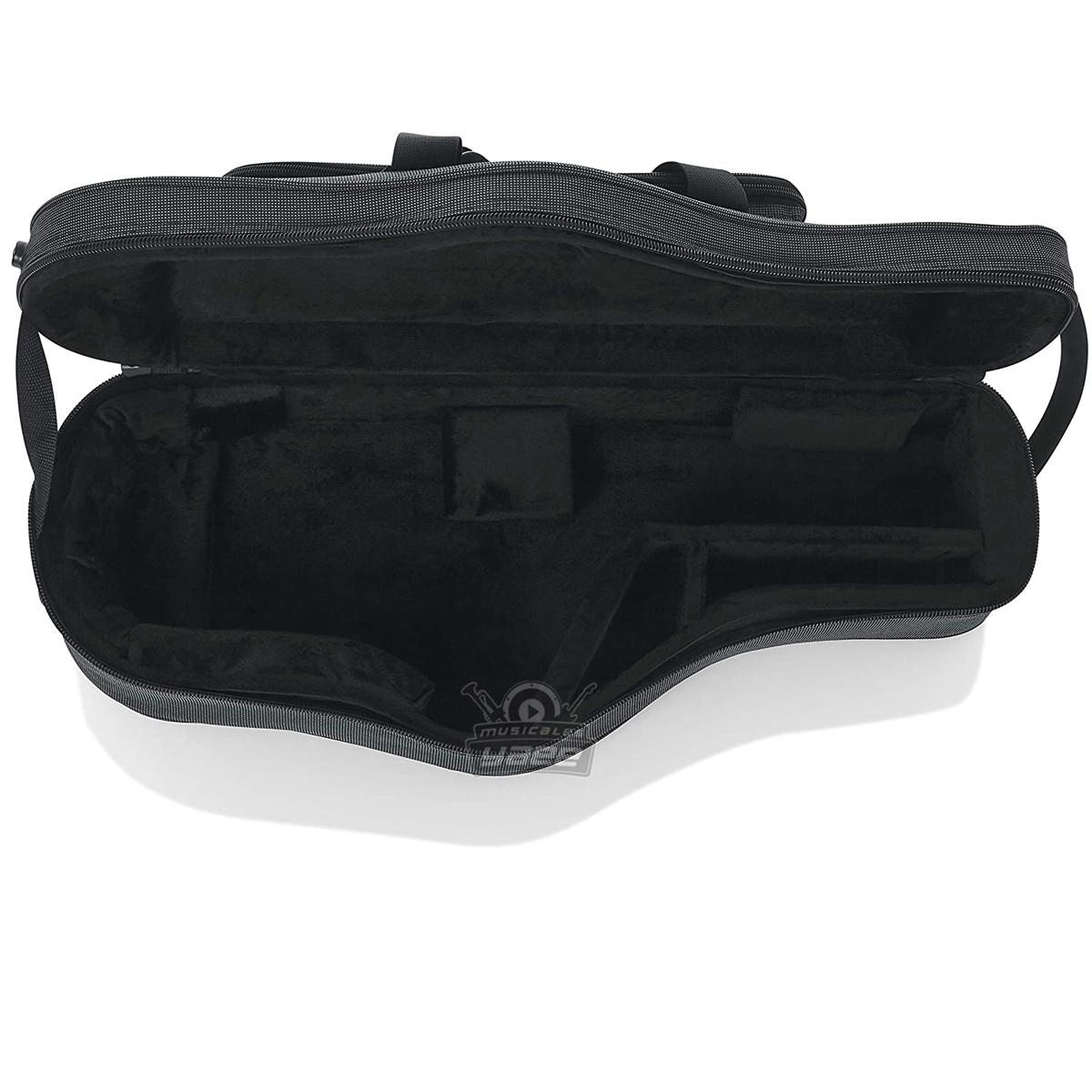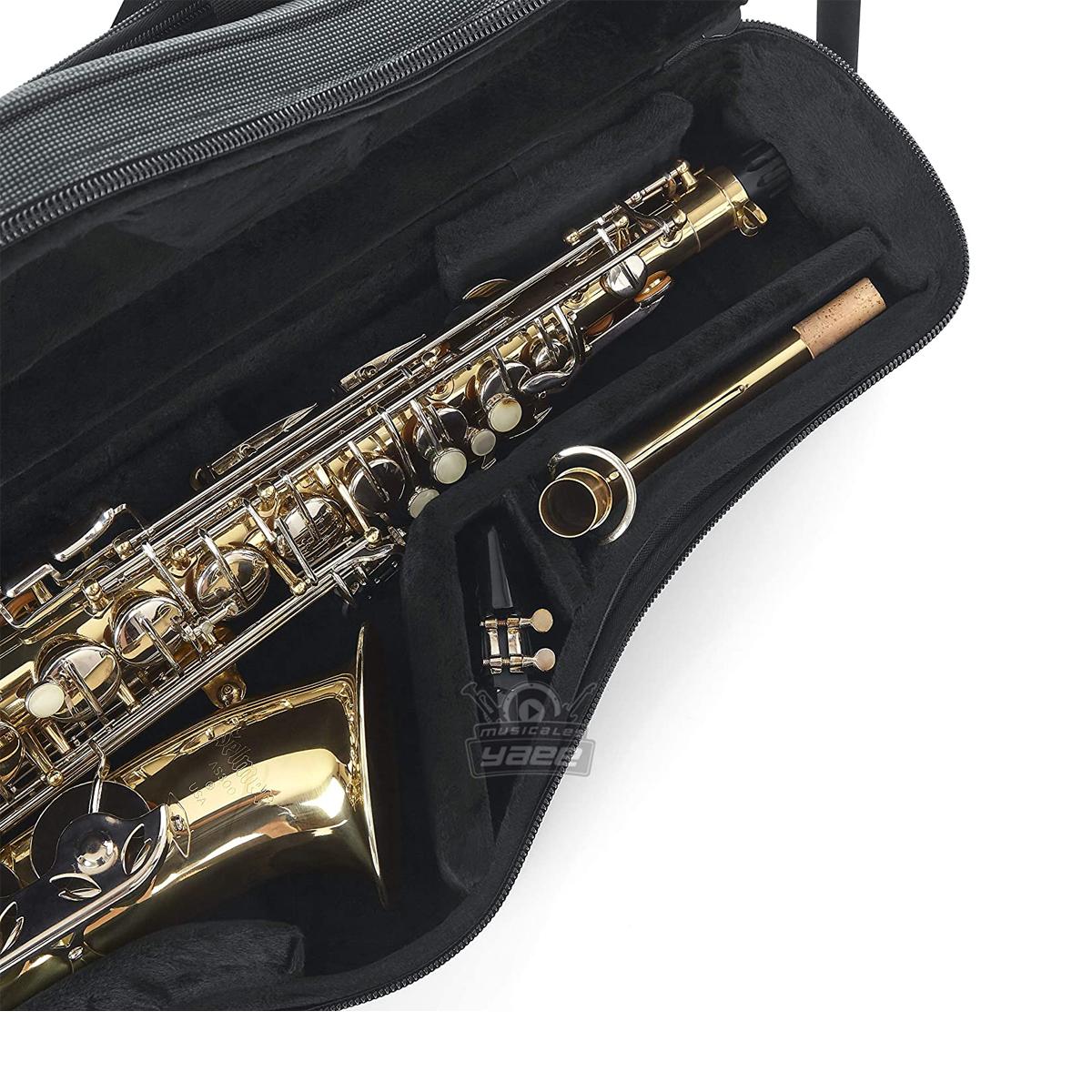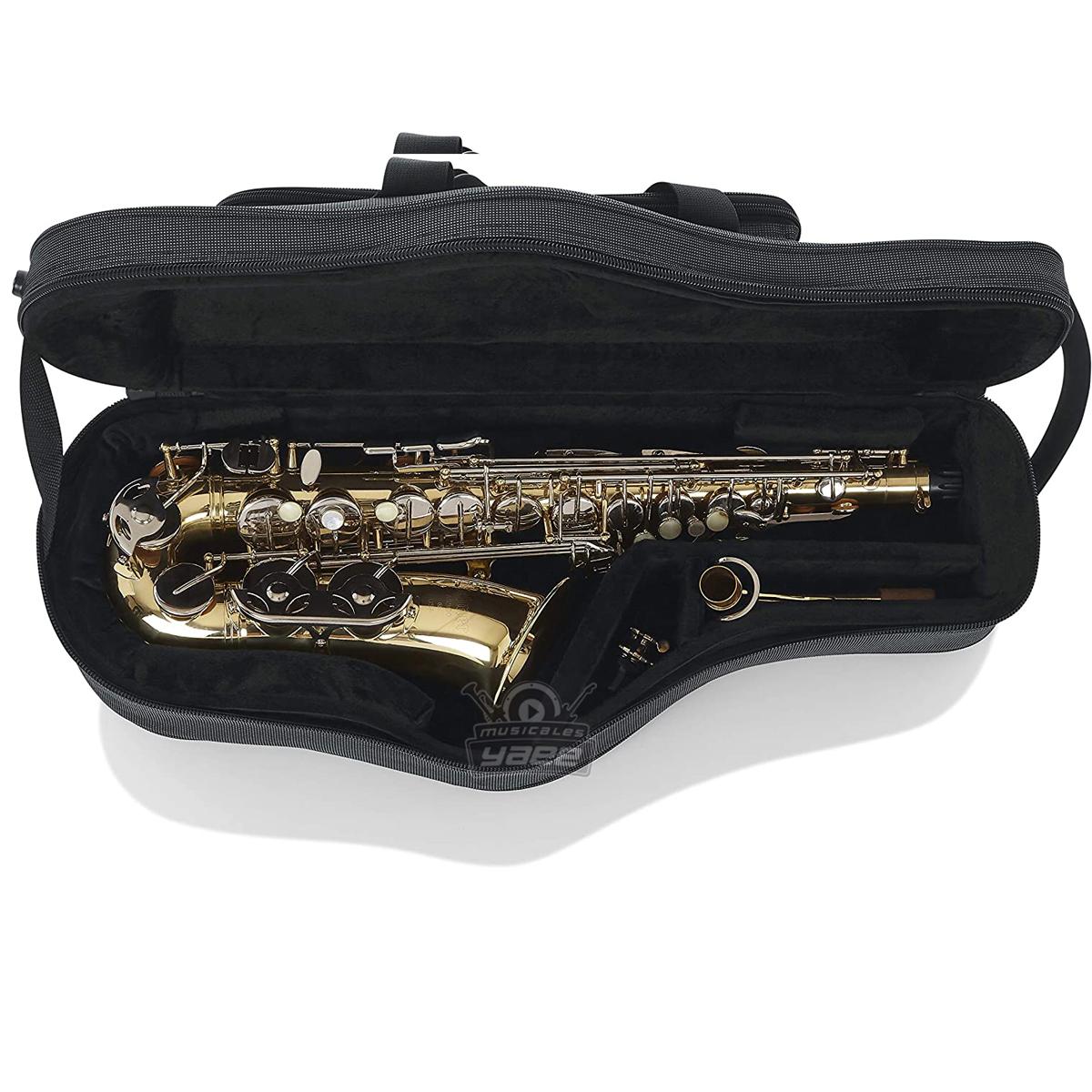 Estuche ligero de poliespuma para saxo alto con almacenamiento para boquilla y otros accesorios.