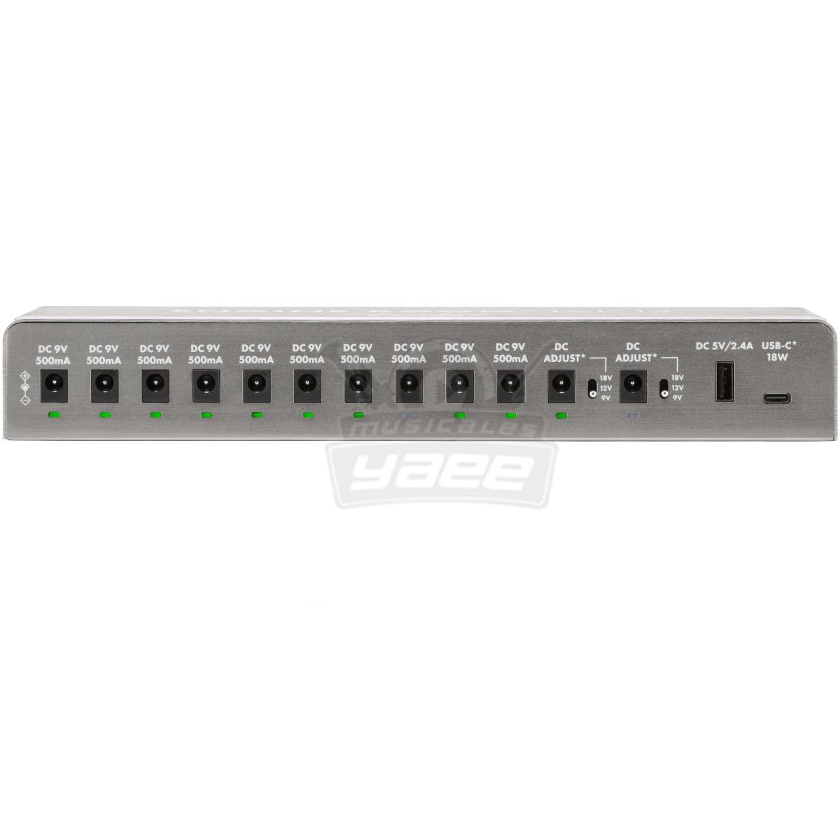 Diseñado para adaptarse a todas sus necesidades de pedalera, el Engine Room® LVL 12 está listo para entregar. Con doce tomacorrientes aislados de tierra, (10) son capaces de entregar 9Vdc a 500mA mientras que (2) tomacorrientes adicionales brindan voltaje conmutable (9v / 12v / 18v) a través de un interruptor deslizante o de palanca de 3 vías. Una salida IEC de cortesía en la parte posterior le permite agregar un Engine Room® LVL5, LVL8 o incluso LVL12 adicional para los equipos más grandes.