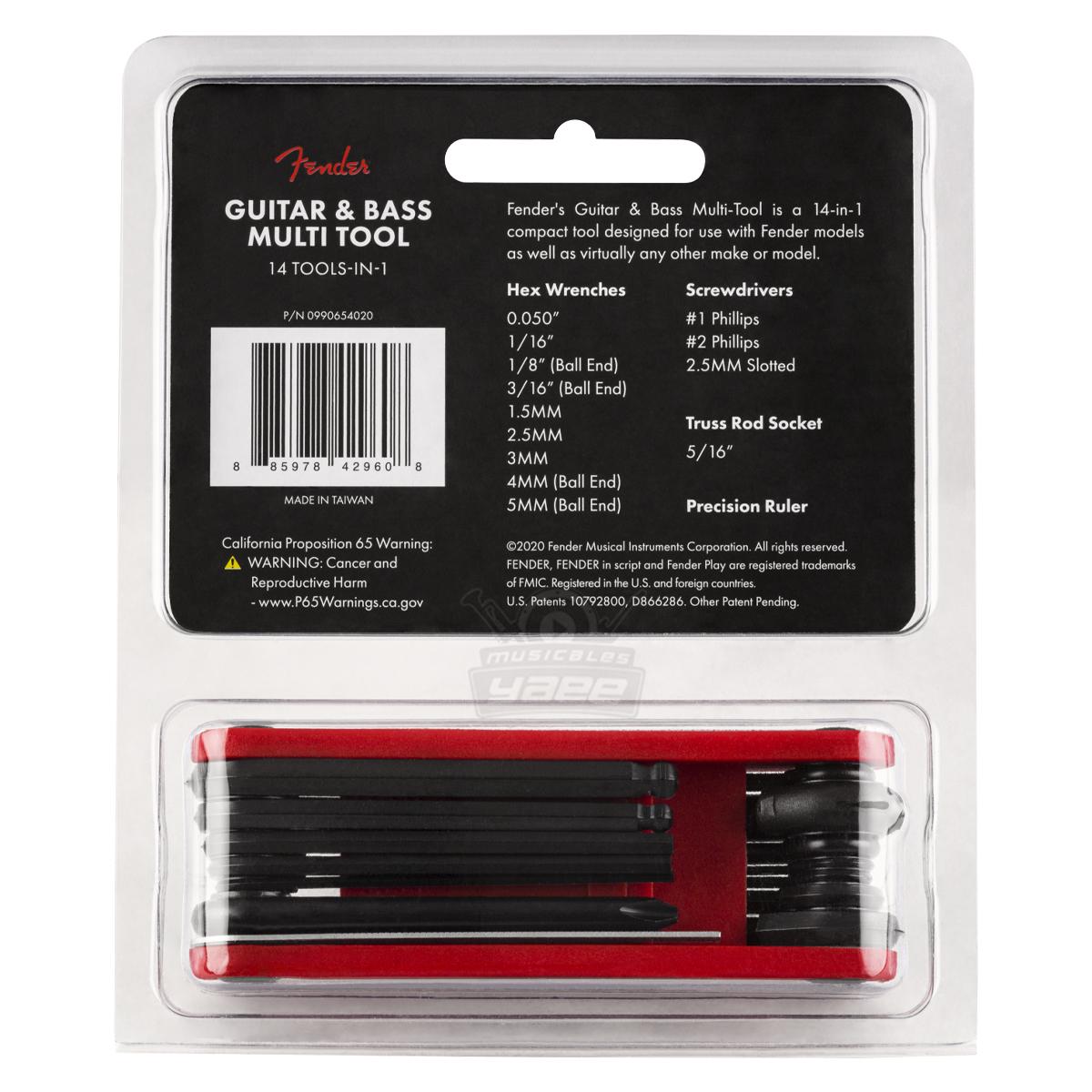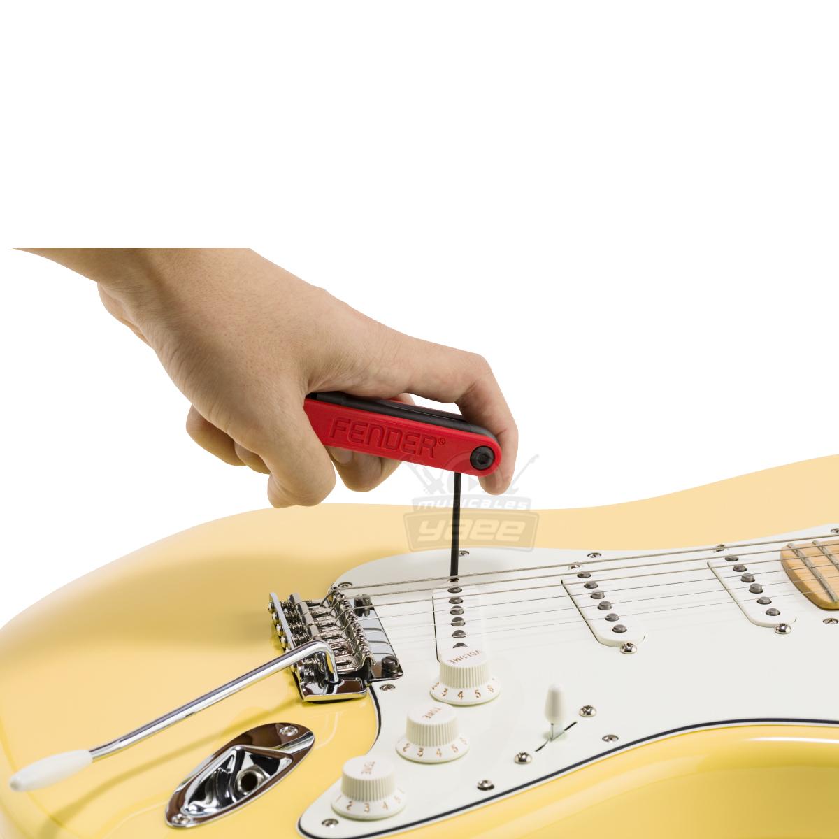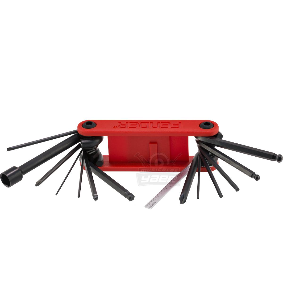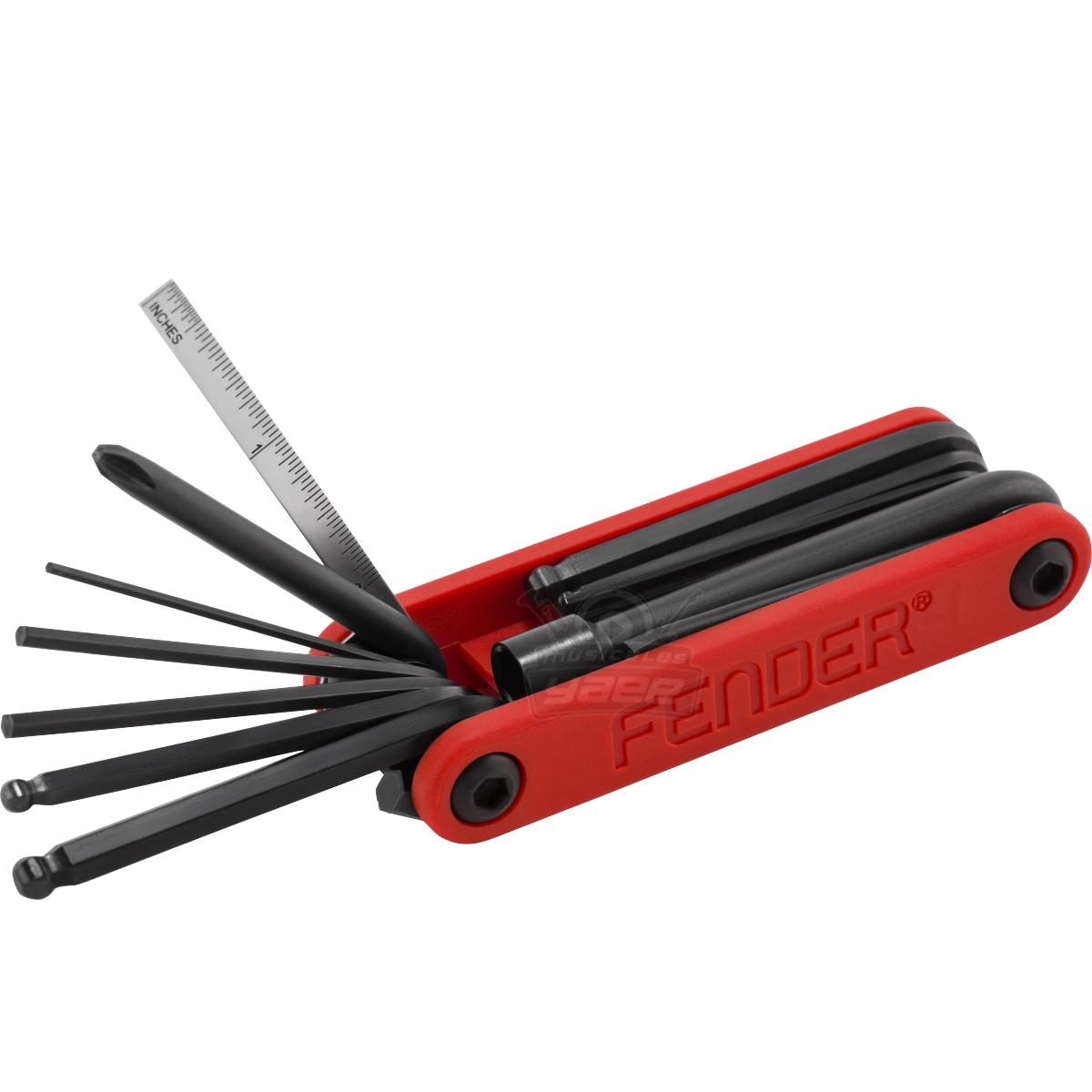 La multiherramienta para guitarra y bajo de Fender es una herramienta compacta 14 en 1 diseñada para su uso con modelos Fender y prácticamente con cualquier otra marca o modelo. Su cuerpo de una sola pieza permite la facilidad de uso y rotación, mientras que las llaves hexagonales del tamaño de la barra de armadura incluidas son de cabeza esférica para facilitar el acceso. Con tamaños estándar y métricos, esta multiherramienta sirve como una caja de herramientas en su bolsillo, brindando la máxima funcionalidad para todas sus necesidades de reparación de instrumentos y trabajo técnico.