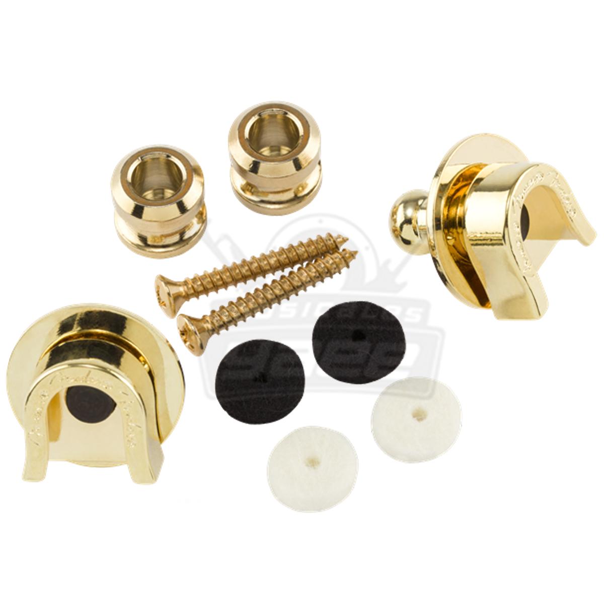 Conjunto de dos Fender Strap Locks para su uso en casi cualquier instrumento Fender. Botones especiales para la correa y cerraduras especiales que mantienen las guitarras y bajos seguros y protegidos. Herrajes de montaje incluidos.