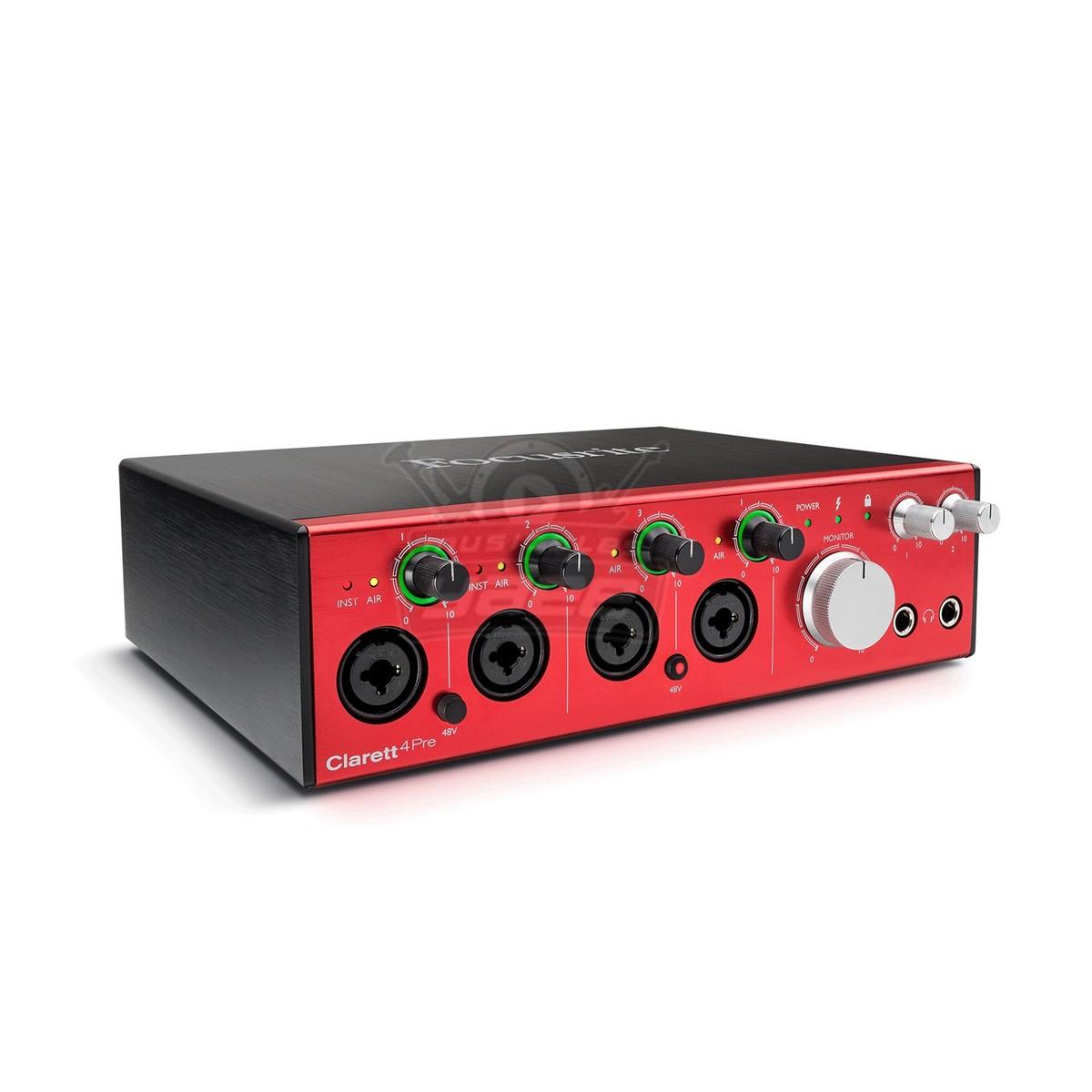 Cuatro preamplificadores / entradas de instrumentos de mica Claret de ruido ultrabajo habilitados para Air que pueden reproducir el sonido del preamplificador de mica ISA original de Focus rite; distorsión ultrabaja y rango dinámico de hasta 119dB; Cuatro entradas de nivel de línea analógicas balanceadas adicionales