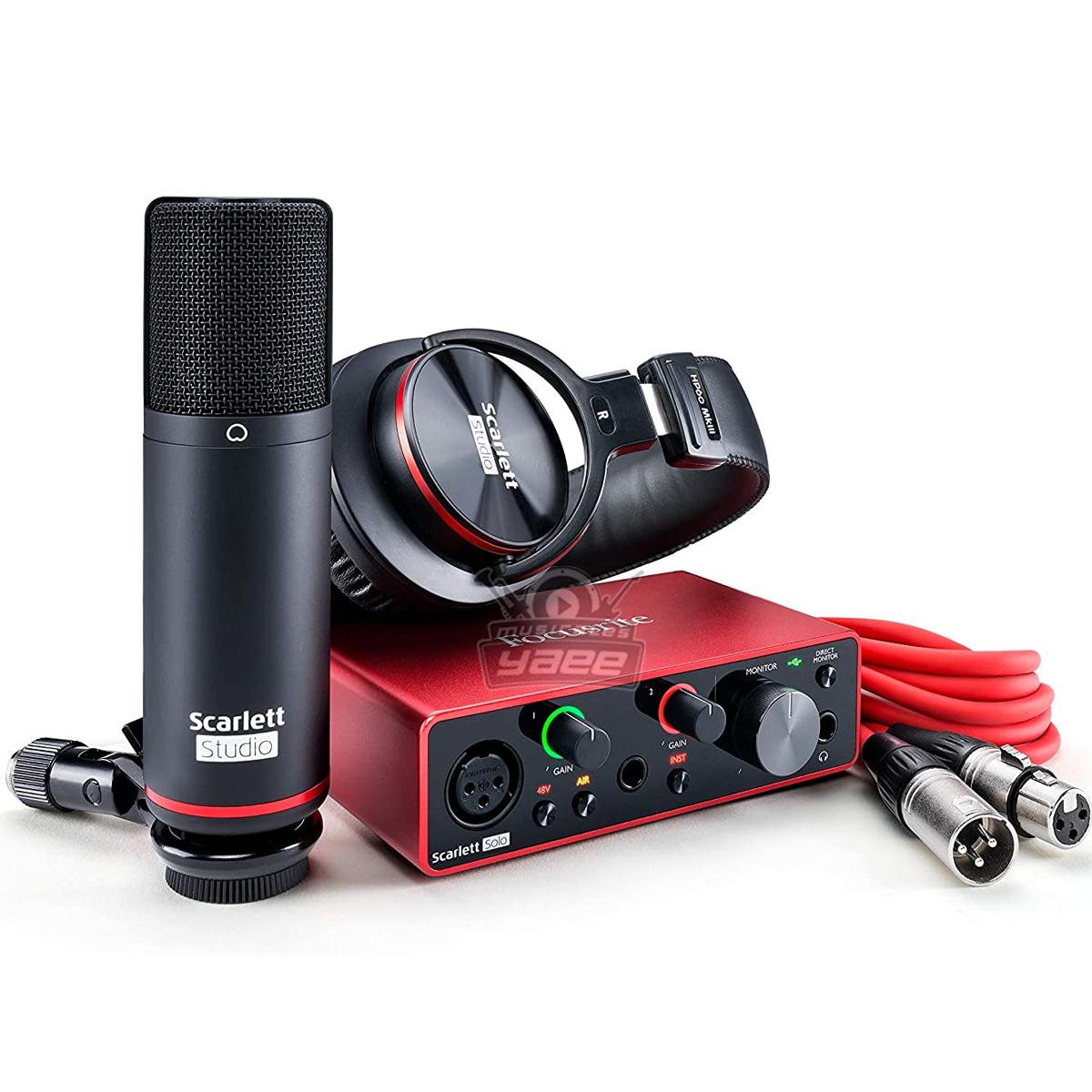 Este paquete para home estudio te brinda una interfaz con la mejor calidad de sonido y conversión digital de su clase, además de un micrófono de condensador de diafragma grande y duradero que captura un audio nítido y limpio. Los auriculares cerrados bloquean el ruido de fondo y le brindan una reproducción precisa.
