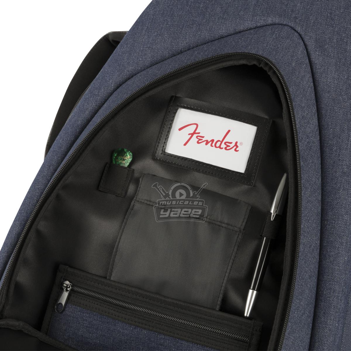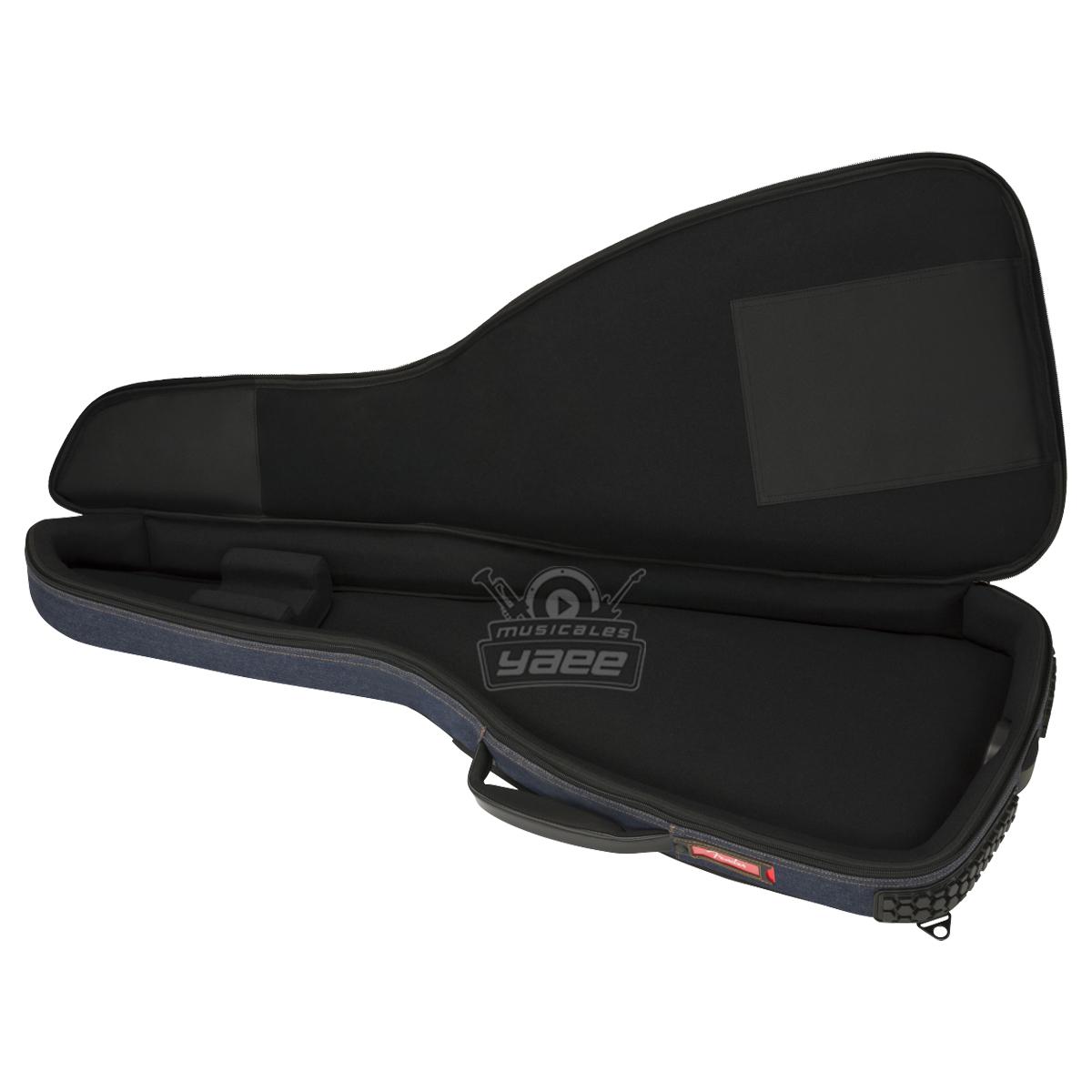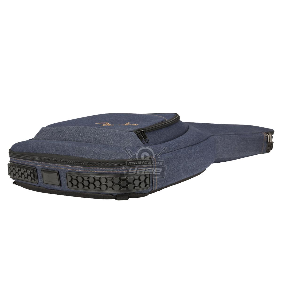 Diseñado para destacar, el estuche de mezclilla de Fender es una forma elegante y segura de mantener su guitarra eléctrica segura mientras viaja. Con la icónica forma asimétrica de Fender, su capa exterior está construida con un denim de alta calidad que protege contra impactos mientras evita rasgaduras y roturas. Su interior está relleno con un acolchado de 20 mm forrado con microfibra suave al tacto que mantiene su instrumento seguro mientras evita daños en el acabado. Incluso viene con protección de botón de correa, un reposacabezas protector y parachoques exteriores para minimizar cualquier tensión en el instrumento mientras está en tránsito. La bolsa de viaje F920 también viene con un asa súper acolchada y correas ergonómicas de malla de aire con hebillas de bloqueo de escalera fácilmente ajustables, para que pueda llevar cómodamente su instrumento sin esfuerzo físico innecesario.