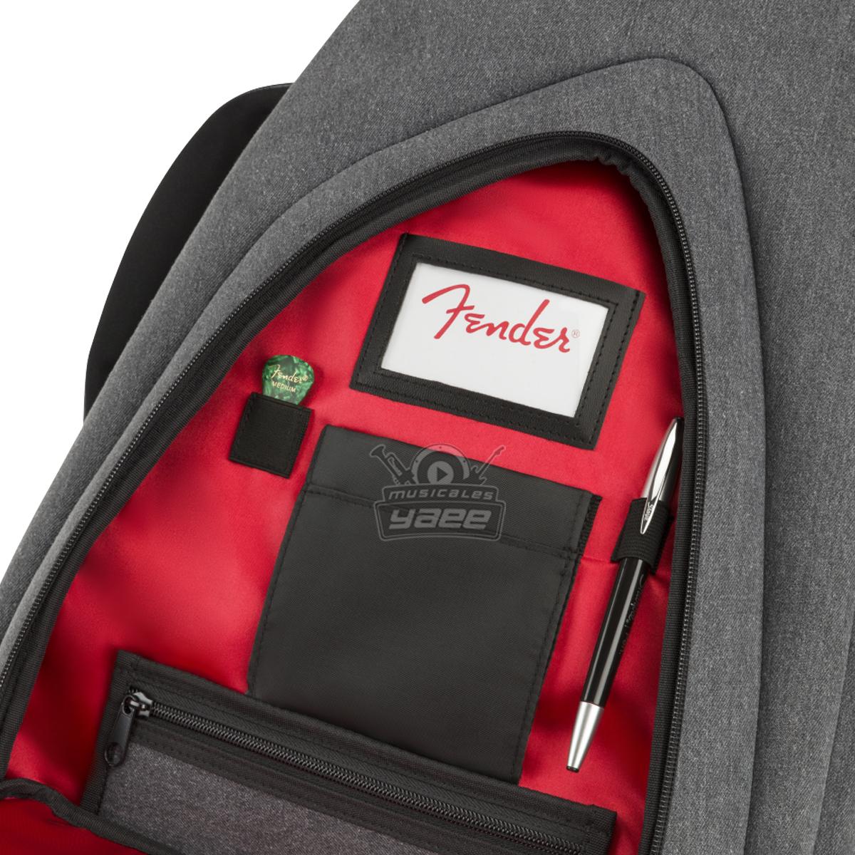 Diseñado para destacar, el estuche de mezclilla de Fender es una forma elegante y segura de mantener su guitarra eléctrica segura mientras viaja. Con la icónica forma asimétrica de Fender, su capa exterior está construida con un denim de alta calidad que protege contra impactos mientras evita rasgaduras y roturas. Su interior está relleno con un acolchado de 20 mm forrado con microfibra suave al tacto que mantiene su instrumento seguro mientras evita daños en el acabado. Incluso viene con protección de botón de correa, un reposacabezas protector y parachoques exteriores para minimizar cualquier tensión en el instrumento mientras está en tránsito. La bolsa de viaje F920 también viene con un asa súper acolchada y correas ergonómicas de malla de aire con hebillas de bloqueo de escalera fácilmente ajustables, para que pueda llevar cómodamente su instrumento sin esfuerzo físico innecesario.