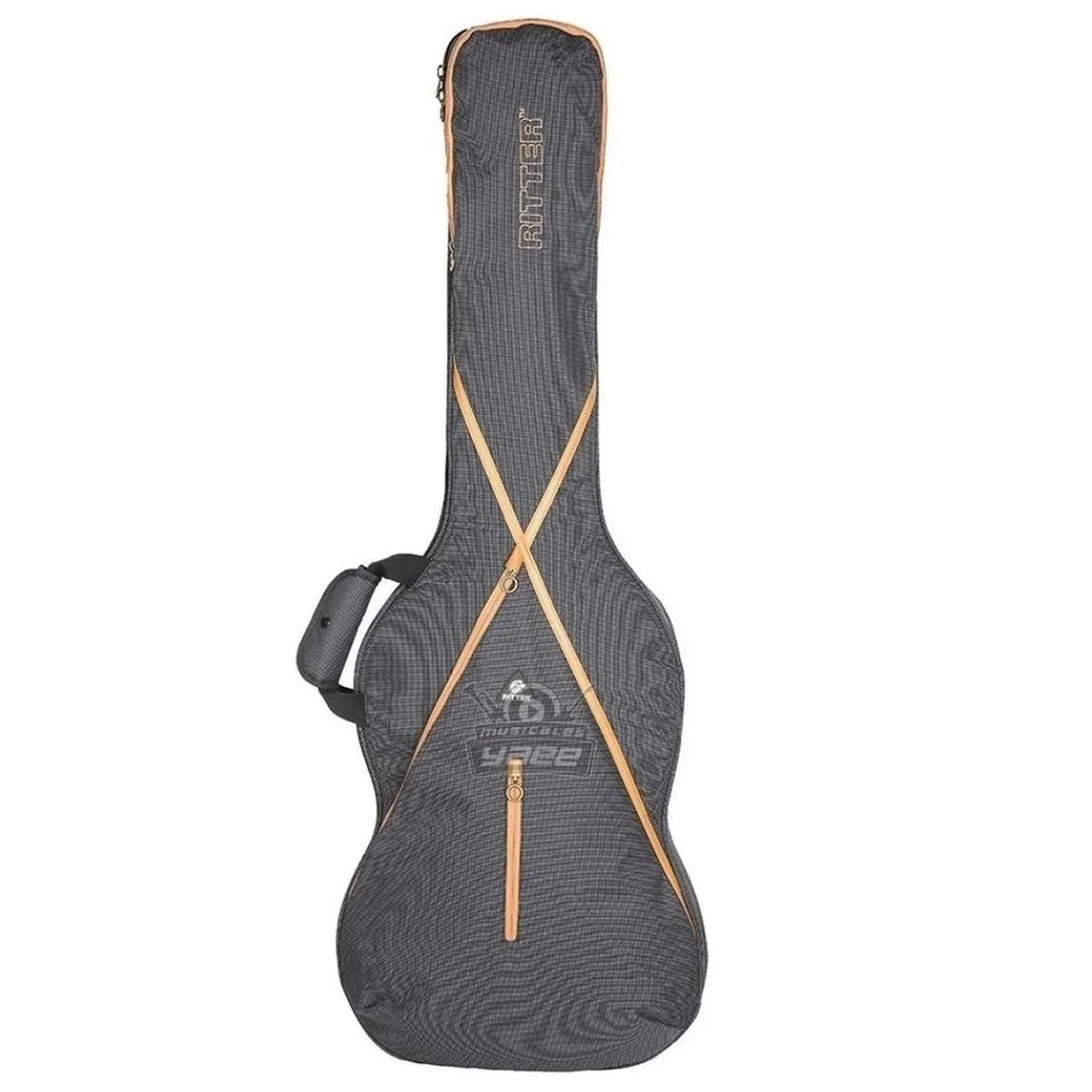 Funda acolchada profesional para Bajo Eléctrico.Protección interior acolchada de 28 mm de los cuales tiene 20 mm de acolchado de espuma de poliuretano de alta densidad, y otros 8 mm repartidos entre espuma blanda, espuma de baja densidad y revestimiento interior de felpa.