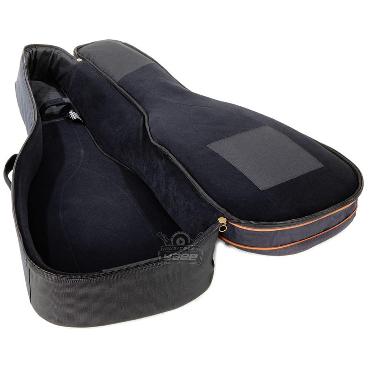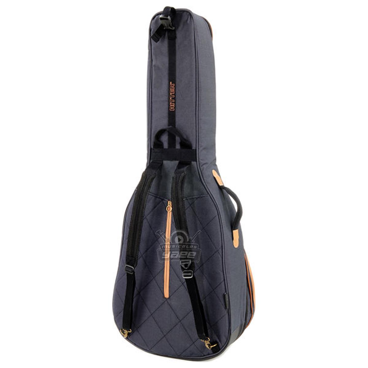 Para Guitarra clásica 3/4 Gama: RITTERSESSION™ Protección acolchada de 28mm (Espuma de alta densidad de 20mm, espuma blanda de 5mm y felpa blanda de 3mm) Fabricada en poliéster repelente al agua de alta calidad Apliques reflectantes totalmente integrados Asa de transporte de estilo equipaje Correas de mochila resistentes ajustables con envoltura de tacto suave Gran bolsillo para accesorios/partituras A4 Bolsillo integrado para púas Protección de poliéster integrada para el puente Protección doble integrada para el clavijero Fabricada de material bicolor jacquard.