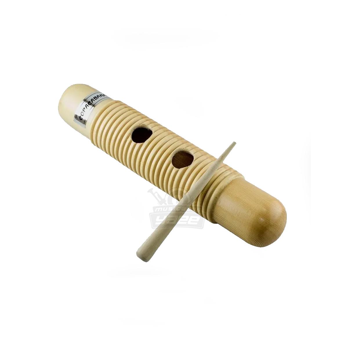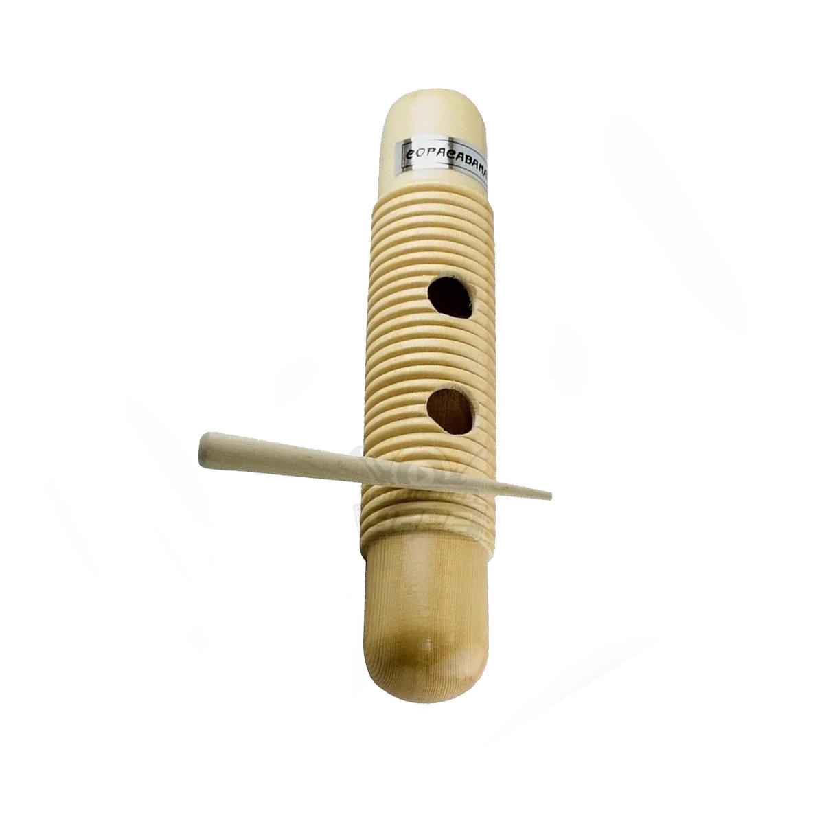 Güiro Copacabana excelente para la percusión, superficie llamativa, orificios de agarre anillado, resistente, sonido brillante.