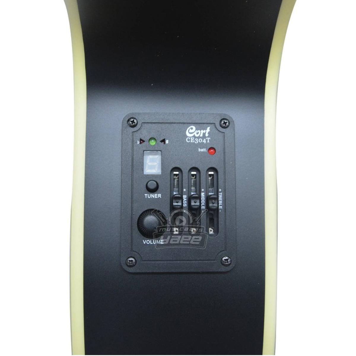 | Electrónica: EQ Cort CE304T y pastilla cerámica bajo puente, con afinador digital incorporado. |