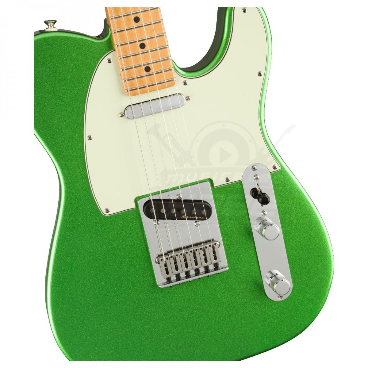 Fusionando el diseño clásico de Fender® con características centradas en el guitarrista y emocionantes nuevos acabados, la Player Plus Telecaster® ofrece una excelente comodidad y un estilo inconfundible. Alimentada por un juego de pastillas Player Plus Noiseless ™, la Player Plus Tele® ofrece un tono cálido y dulce de Tele®, sin zumbidos. Un interruptor push-pull en el control de tono activa ambas pastillas en operación en serie, brindando mayor salida y cuerpo. El mástil Modern “C” Player Plus Tele® de satén sedoso se adapta a tu mano como un guante, con bordes lisos redondeados para una comodidad suprema. El diapasón de radio de 12 ”y los 22 trastes jumbo medianos facilitan las derivaciones fluidas y los bendings. Un moderno puente Tele de 6 selletas con monturas de acero en bloque agrega un toque de brillo al tiempo que proporciona una entonación precisa y los clavijeros de bloqueo brindan una afinación sólida como una roca y hacen que los cambios de cuerda sean rápidos y fáciles. Con el estilo clásico de Fender, funciones avanzadas e impresionantes acabados nuevos, la Player Plus Telecaster es la herramienta perfecta para despertar tu creatividad y destacar entre la multitud.