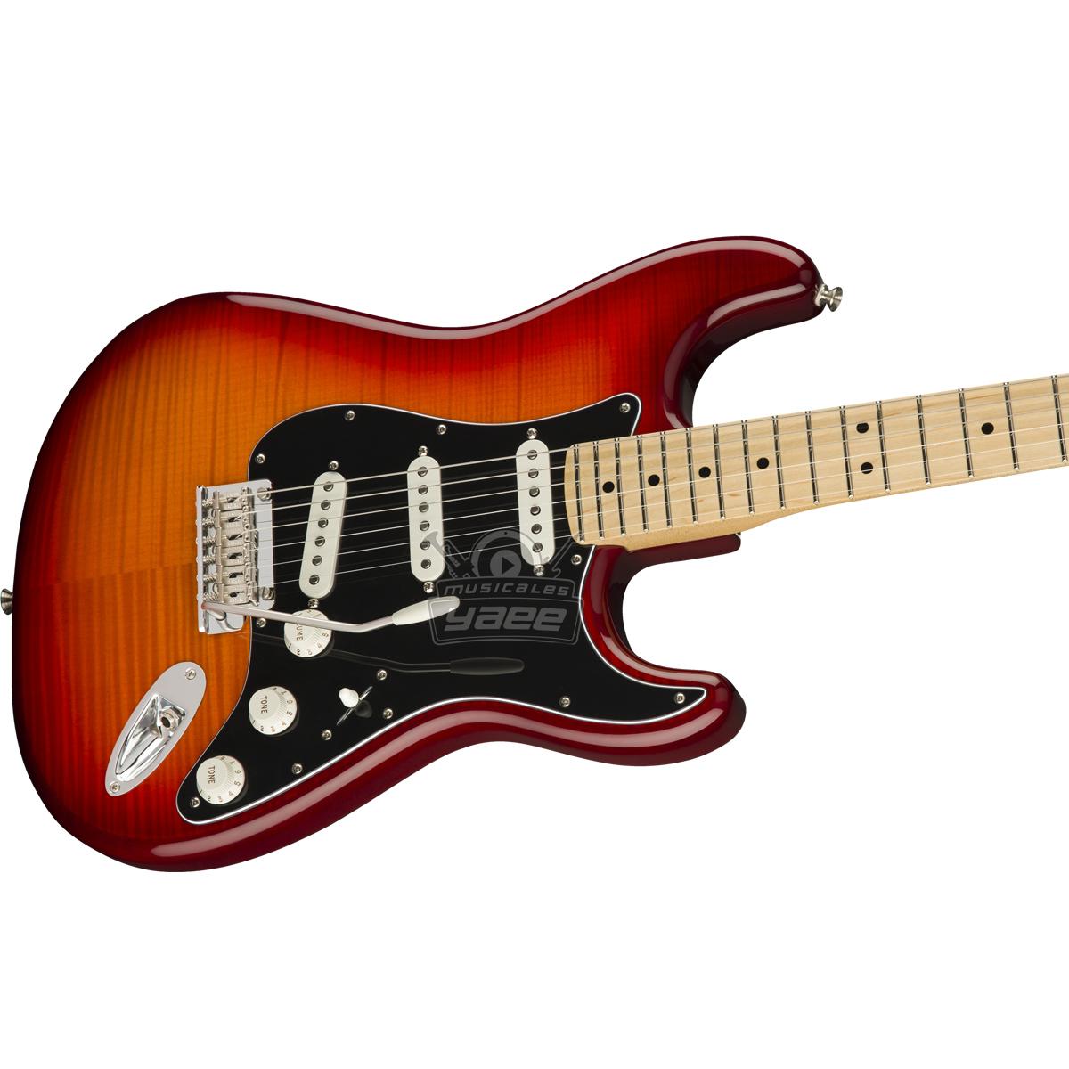 | Cuerpo | Aliso con tapa de arce flameado /Stratocaster® |