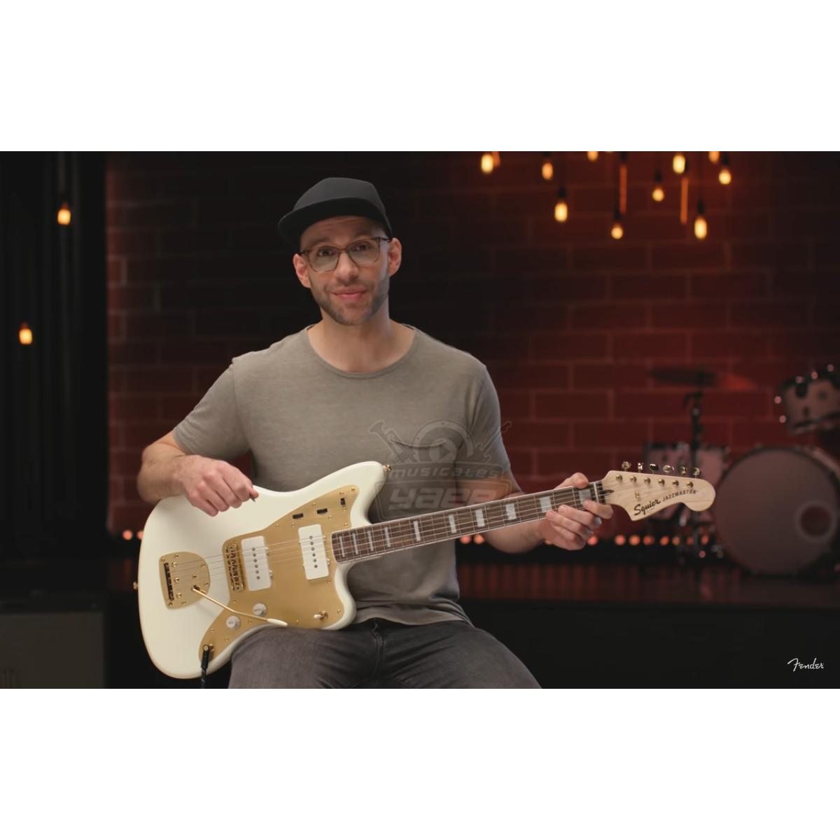 Los primeros instrumentos que llevaron el nombre de Squier se introdujeron en 1982, respondiendo a la demanda de diseños genuinos de Fender® a precios accesibles. La colección Squier 40th Anniversary celebra el viaje de 40 años de la marca de nivel de entrada de Fender con ediciones especiales de Telecaster® , Stratocaster®, Jazzmaster®, Precision Bass® y Jazz Bass®, todos disponibles en las variantes Gold Edition y Vintage Edition. La Squier® 40th Anniversary Jazzmaster®, Gold Edition es un modelo elegante adornado con una llamativa colección de funciones exclusivas para el fanático exigente de Squier. Con un sorprendente hardware chapado en oro, un golpeador de aluminio anodizado dorado, un diapasón de laurel indio con incrustaciones de bloques perlados, una placa de mástil de aniversario grabada y un acabado brillante en todas partes, esta Jazzmaster está preparada y lista para ser el centro de atención. Los refinamientos amigables de este modelo conmemorativo incluyen un perfil de mástil en forma de "C" delgado y cómodo para una sensación fácil de tocar, clavijas de estilo vintage y puente flotante de 6 selletas y trémolo para un rendimiento y estilo auténticos, diseñado por Fender. -Pastillas de bobina sencilla con imanes de alnico 5 para un tono Jazzmaster familiar.