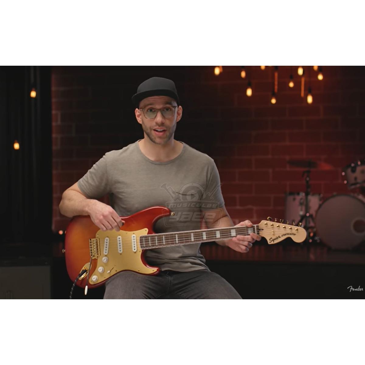 La Squier 40th Anniversary Stratocaster Gold Edition marca el magnífico impacto que los instrumentos Squier han tenido en la industria. Accesible para todo el mundo, tanto para los principiantes como para los profesionales, esta llamativa guitarra muestra el renombrado diseño de Fender sin que su precio sea tan elevado. Y además es un sueño para tocar. Gracias al elegante mástil de arce en forma de "C", podrás deslizarte por la escala sin problemas, permitiendo que cada nota brille.