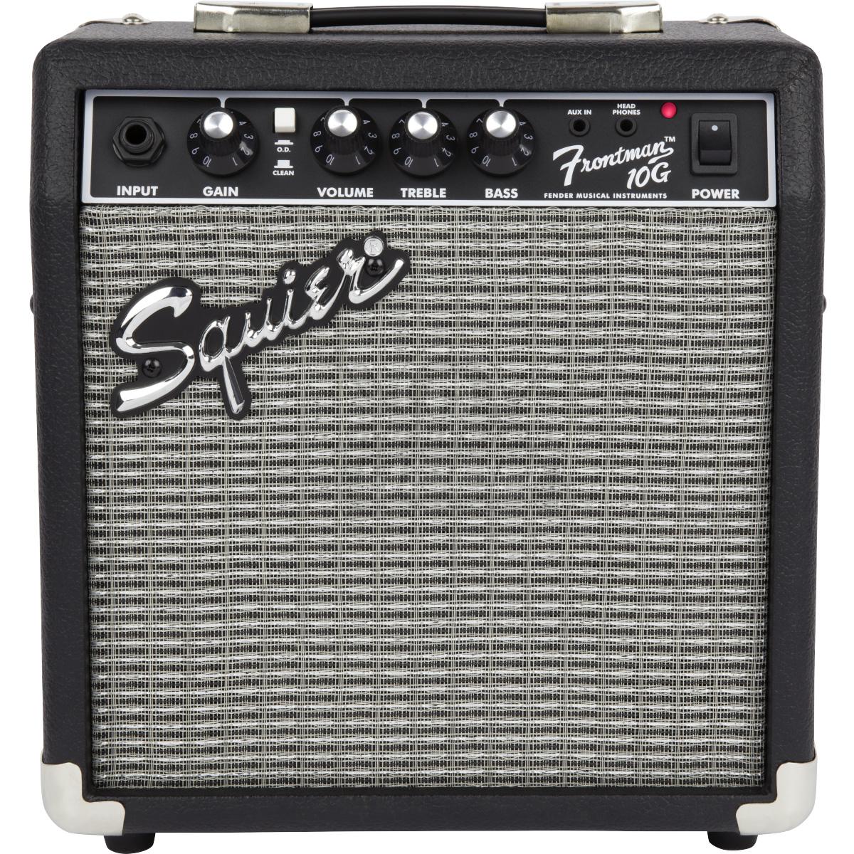 El amplificador Squier Frontman® 10G incluido es el compañero perfecto para improvisar gracias a su entrada auxiliar que te permite tocar junto con tus canciones favoritas o pistas de acompañamiento, así como un conector para auriculares para practicar en silencio. El Squier Starter Strat Pack también viene con una funda acolchada, correa, cable y púas, todo lo que necesitas para dejar de soñar y empezar a tocar.