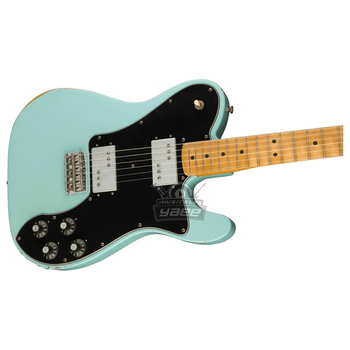 Reimaginamos el par de pastillas humbucker estilo Wide Range para que suenen brillantes y audaces con el tipo de tono impactante que ha inspirado a los músicos durante más de cuatro décadas. El mástil medio en forma de "C" tiene un diapasón de radio de 9,5 "con 21 trastes medium-jumbo para una sensación de interpretación clásica. Un puente Strat® rígido de estilo vintage con cuerdas a través del cuerpo y seis selletas le da a esta Telecaster una entonación precisa Los afinadores con sello "F" ofrecen una estética de época, sensación clásica y una estabilidad de afinación sólida. Otras características incluyen botones de correa de estilo vintage, herrajes cromados y placa de cuello de tres pernos. Incluye estuche de lujo.
