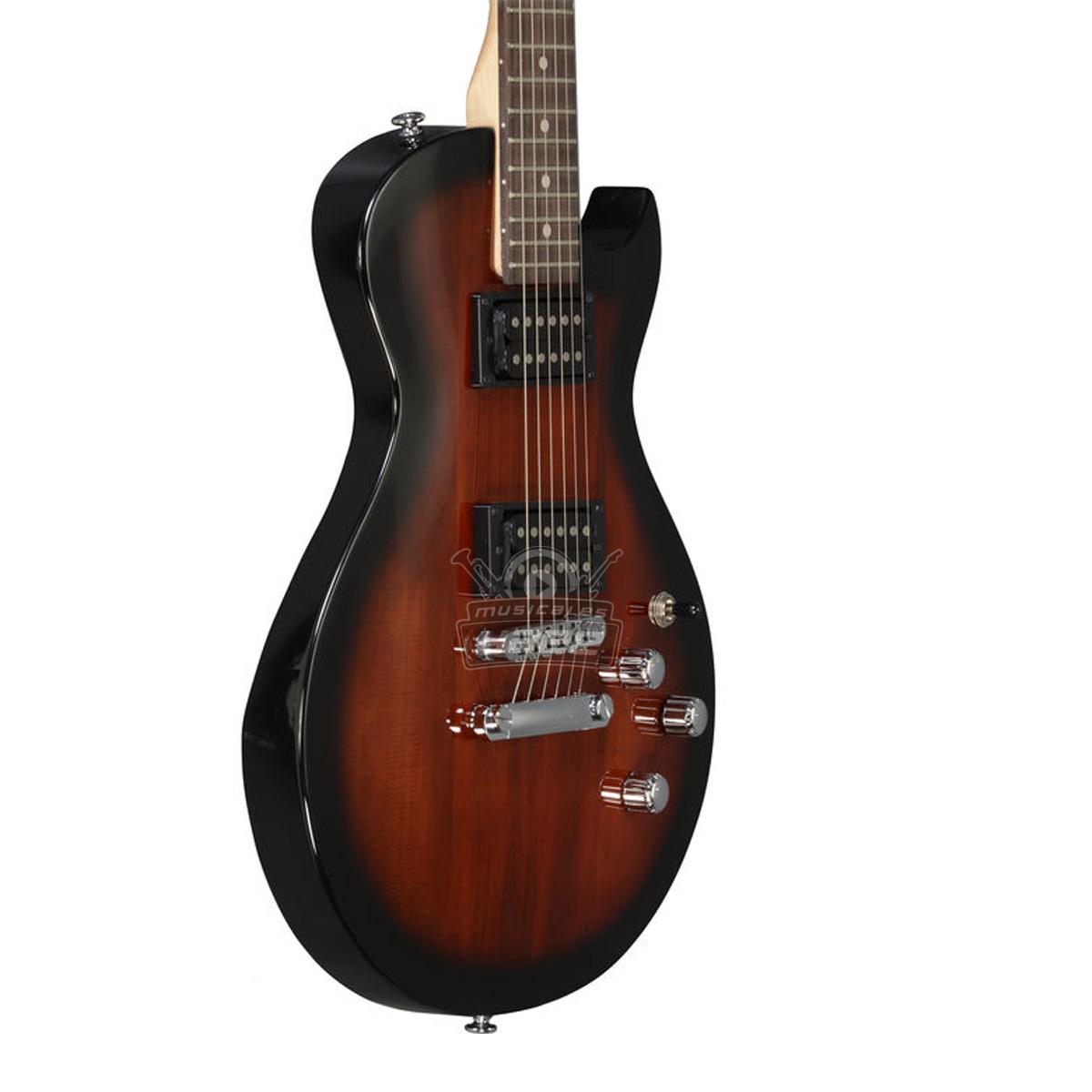 La serie GIO GART60 de Ibanez es una guitarra eléctrica de cuerpo sólido construida con un cuerpo de álamo de un solo corte que presenta un atractivo acabado brillante de nogal y un mástil de arce delgado y atornillado con un diapasón de palisandro de 22 trastes. El puente y el cordal Full Tune III resaltan la resonancia y el sostenido natural del instrumento.