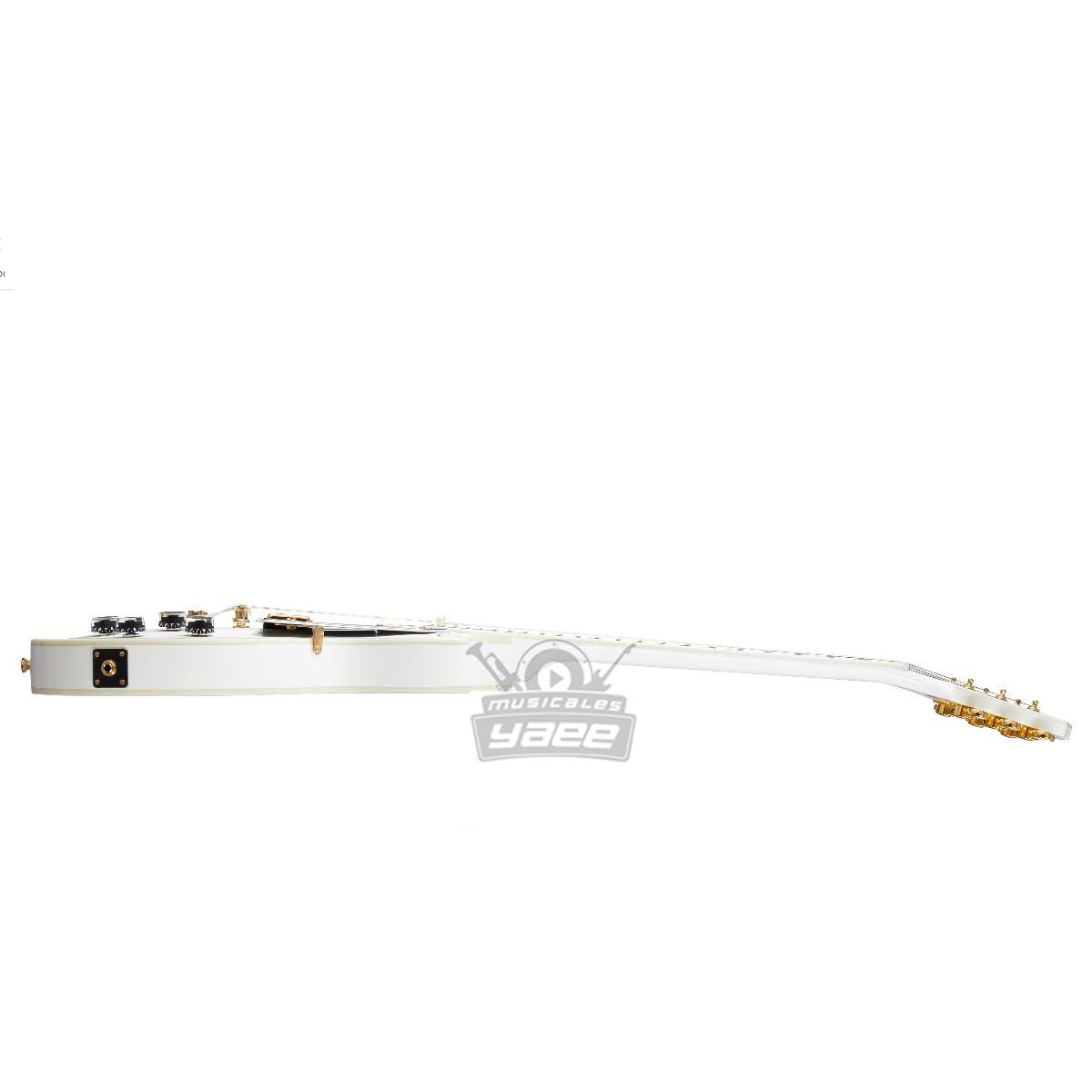 La nueva Les Paul Custom es parte de la colección Inspired by Gibson de Epiphone y rinde homenaje al clásico de los años 50 diseñado por el propio Sr. Les Paul en 1954 como el? Esmoquin? versión de su revolucionaria obra maestra de cuerpo sólido. Con el cuerpo tradicional de caoba encuadernado a medida, perfil de mástil SlimTaper de los años 60, diapasón de ébano con incrustaciones de bloque, puente Epiphone LockTone Tune-O-Matic dorado y cordal Stop Bar, un par de humbuckers Epiphone ProBucker aclamados por la crítica e incrustaciones personalizadas de diamantes divididos en el cabezal. Este modelo Epiphone inspirado por Gibson también tiene el cabezal Kalamazoo estilo años 60, cuello enrollado para una sensación cómoda, tuerca Graph Tech NuBone, cableado apropiado para la época y ollas CTS.